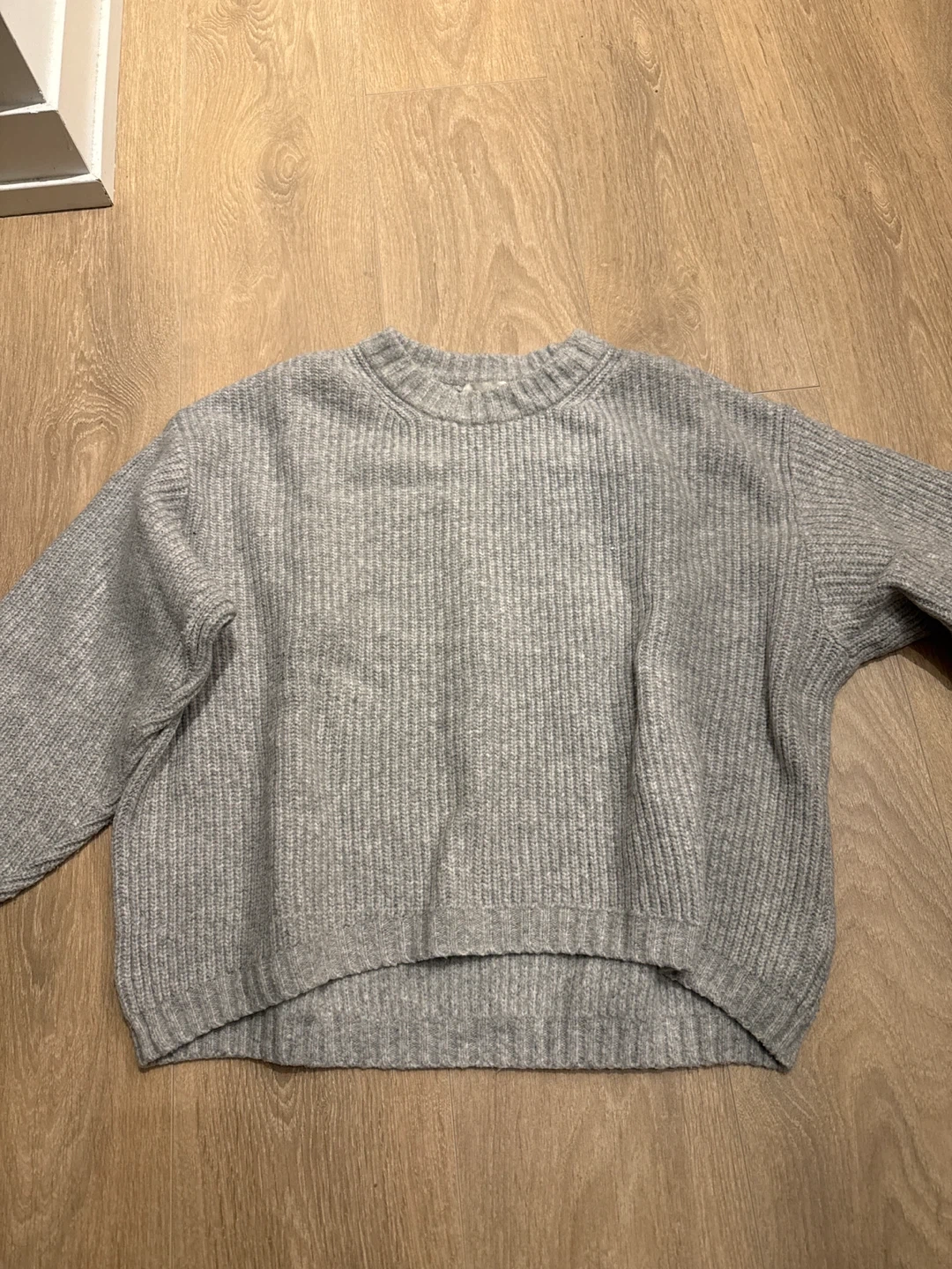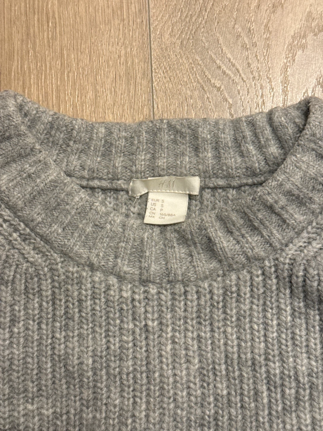 A cozy H&M knit sweater in a lovely grey colour! It's a size small and perfect for layering or wearing on its own. The material is soft and comfortable, great for those chilly days.