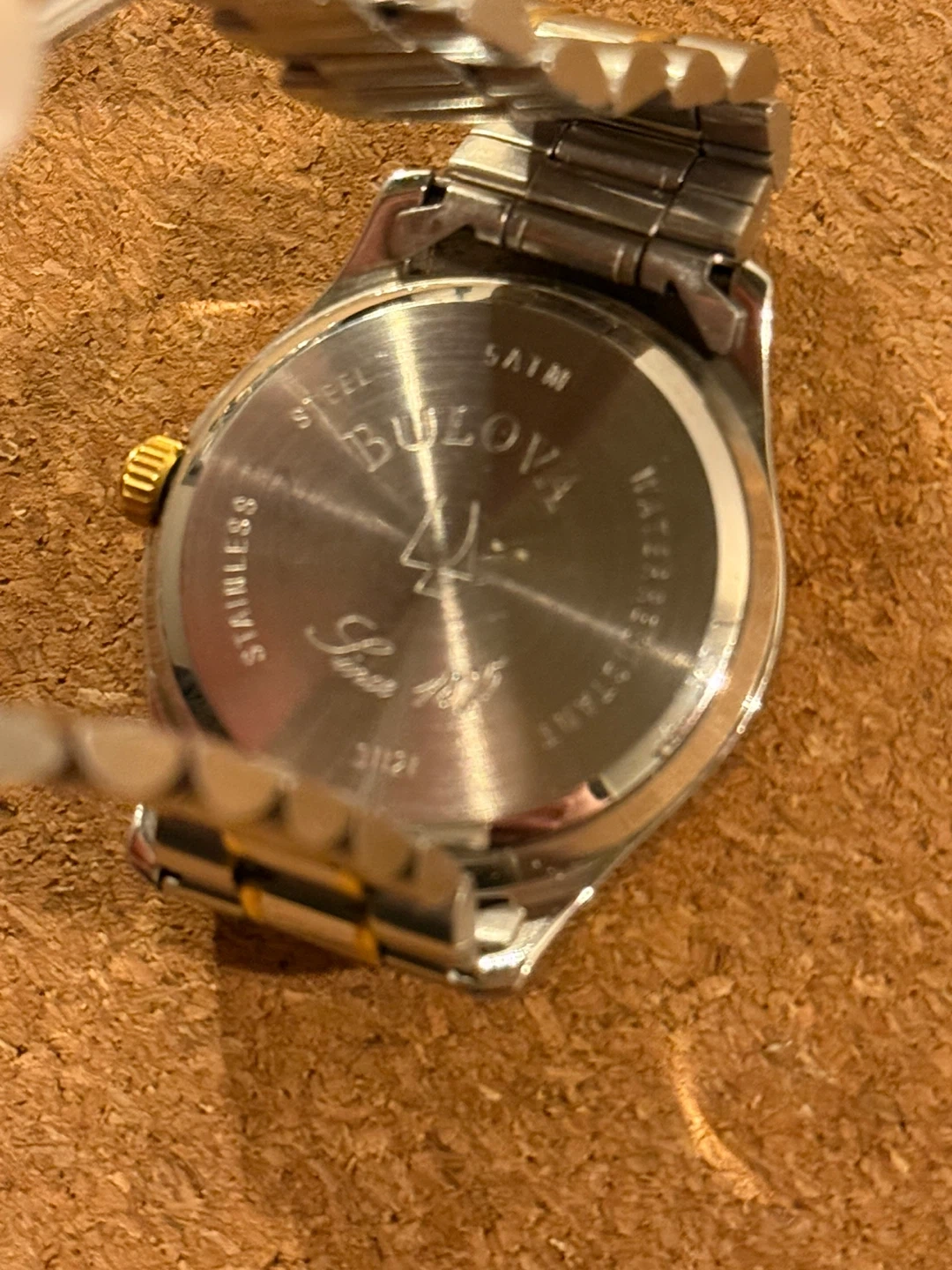 Selling a Bulova automatic watch with a stainless steel band. It features a two-tone design with gold accents. The watch is marked as water-resistant and has 'Since 1875' engraved on the back. It's a classic and stylish timepiece!