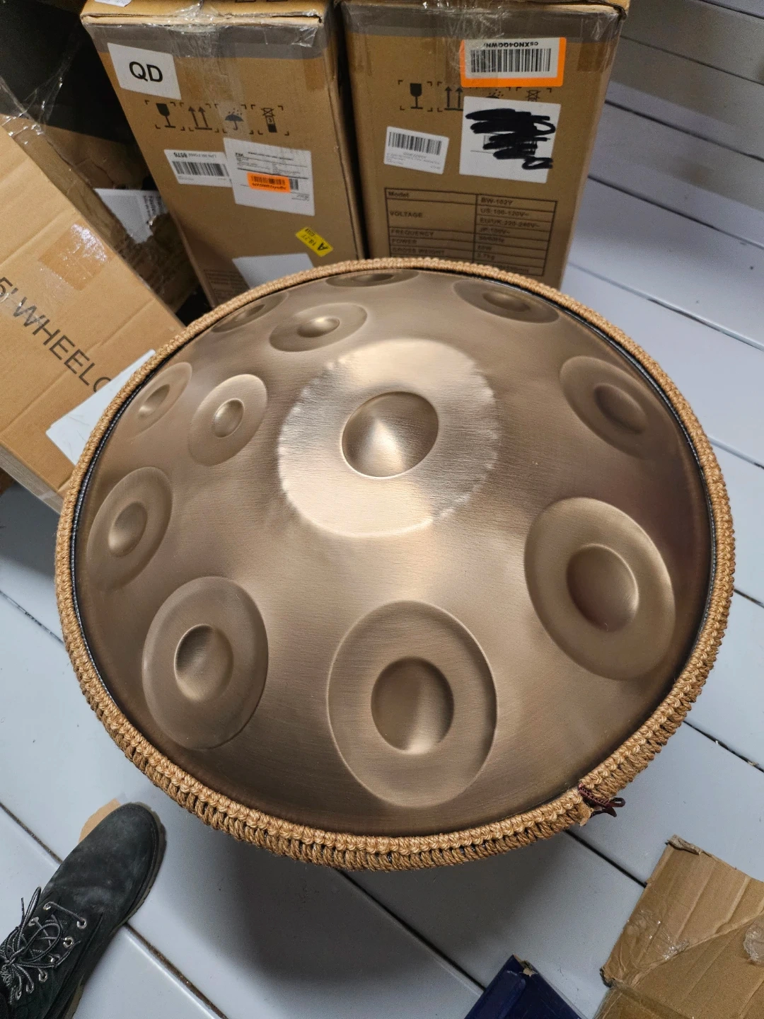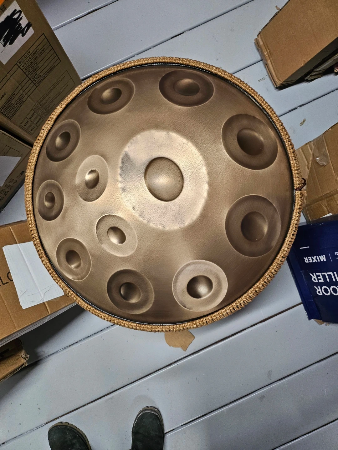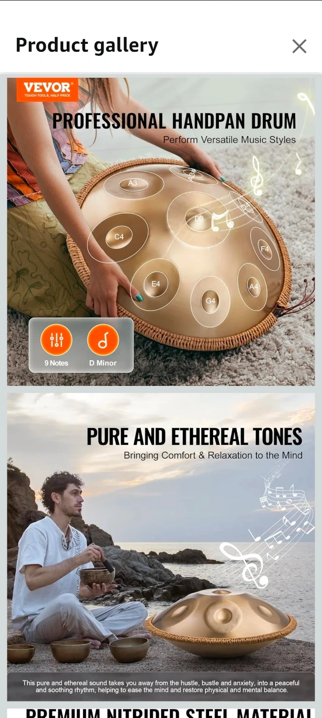 Discover the soothing sounds of this Vevor 22-inch handpan drum, designed with 12 notes for both beginners and professional musicians. This instrument is practically brand new, accessories sealed in its original packaging, promising an untouched auditory experience. The steel hand drum is carefully hand-tuned to create ethereal, relaxing tones that bring comfort and peace, making it perfect for meditation, yoga, or simply unwinding after a long day.