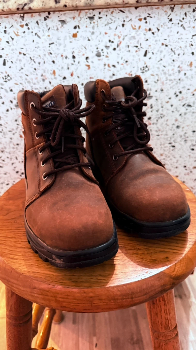 Selling a pair of woman’s work boots in good condition. They are a relaxed fit and look great for outdoor work or casual wear!