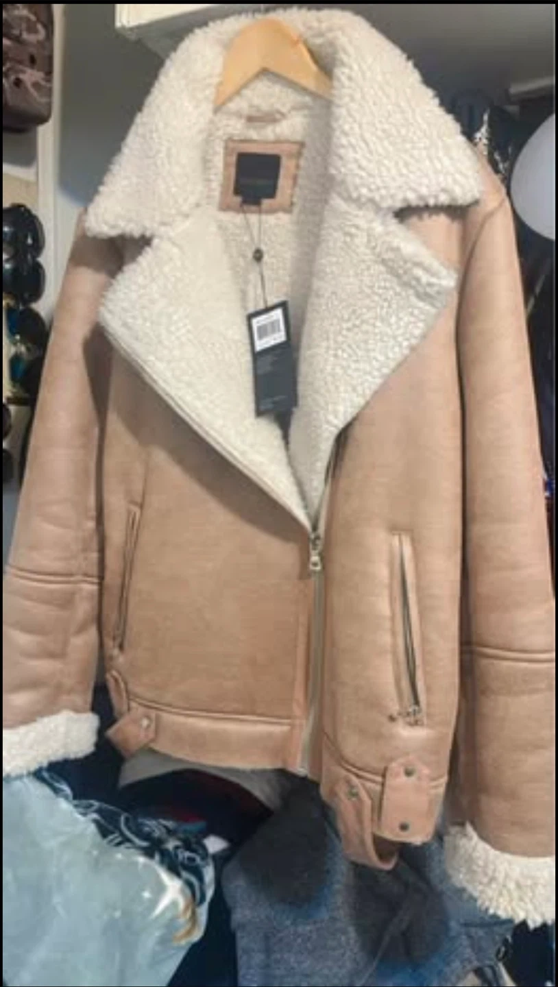 Selling a Decibel faux leather aviator jacket in size L. It features a soft, cozy lining and a stylish design. Perfect for staying warm and fashionable!