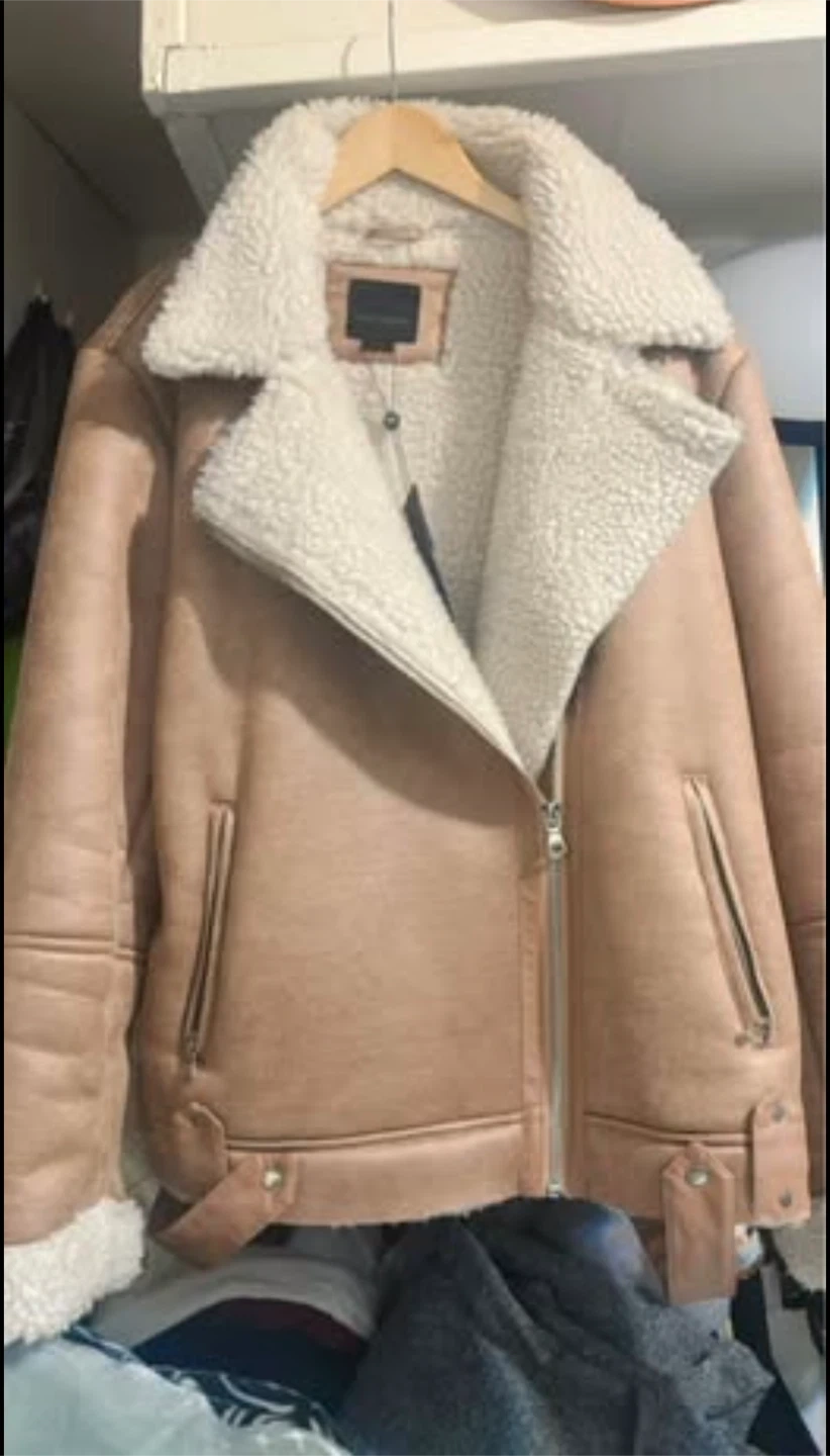 Selling a Decibel faux leather aviator jacket in size L. It features a soft, cozy lining and a stylish design. Perfect for staying warm and fashionable!