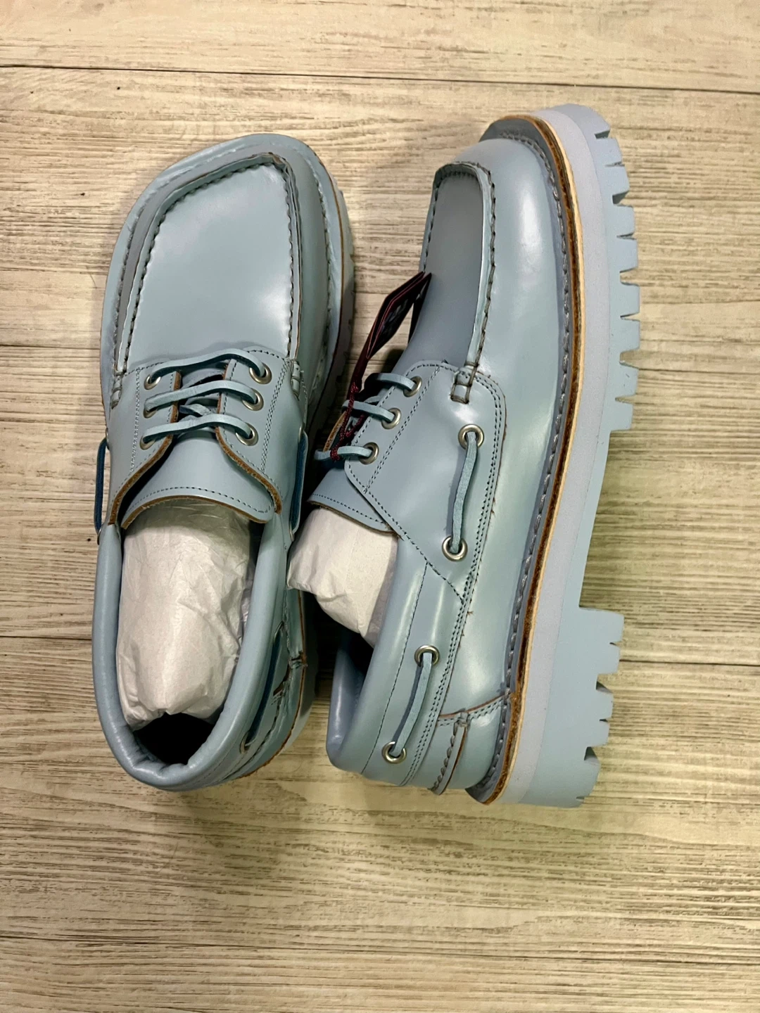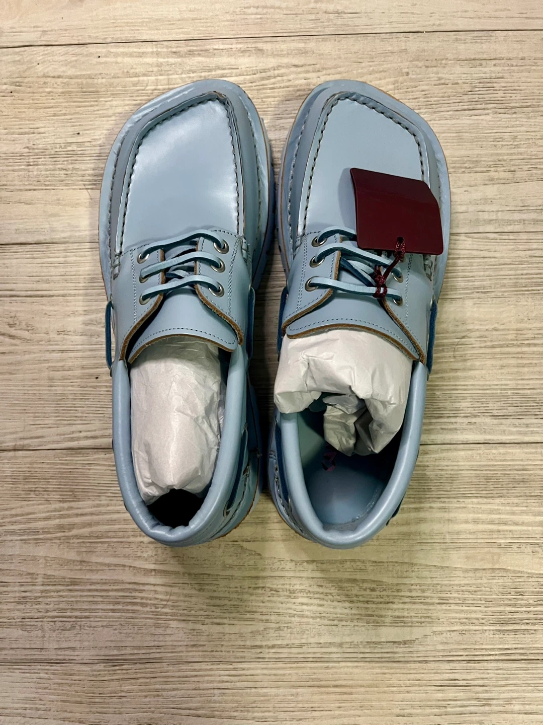 Selling a pair of Camper Lab Traktori boat shoes in a pastel blue color! They are size US 10 and come with the original box. These shoes feature a unique lug sole design & dust bag included.