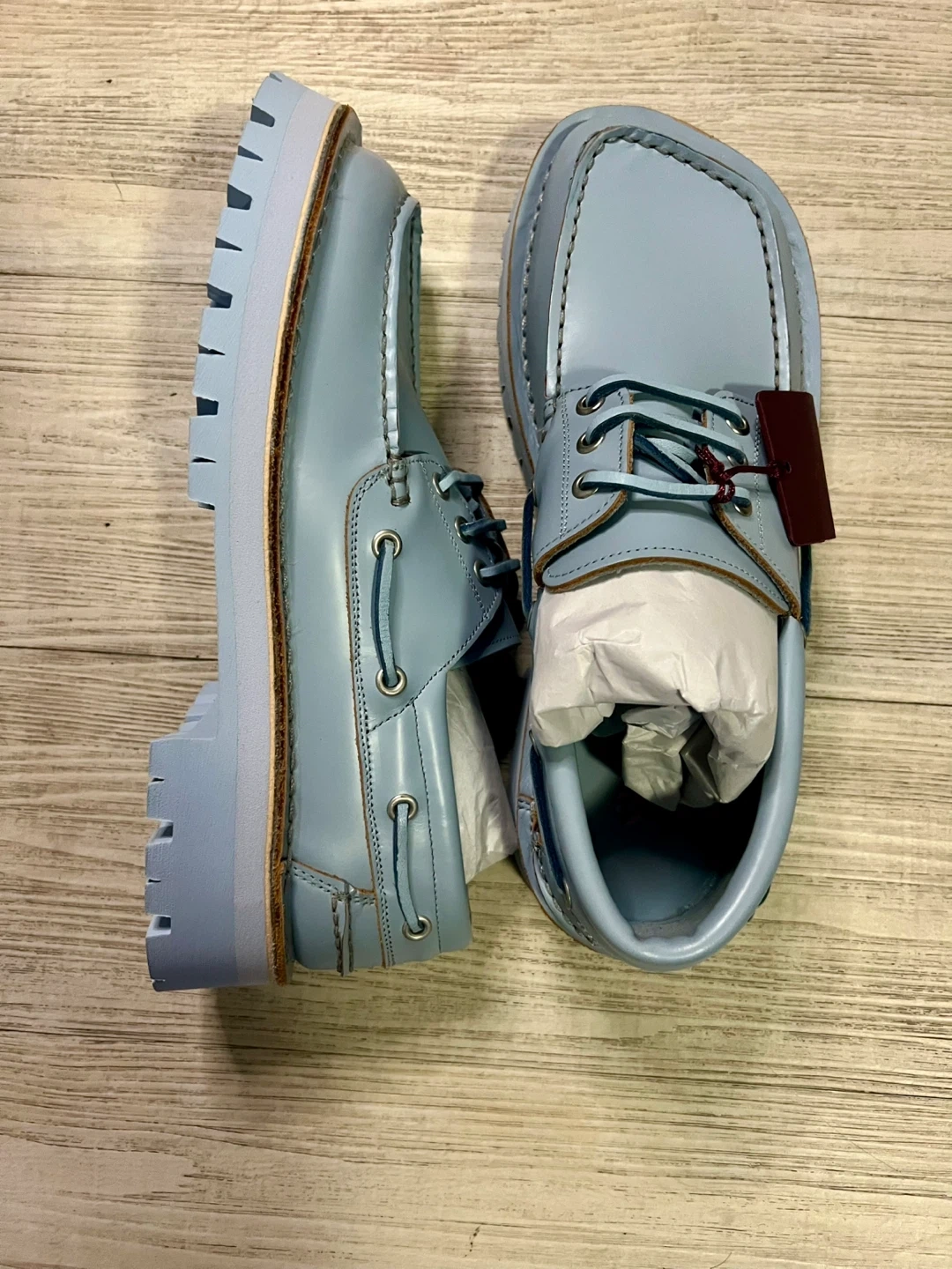 Selling a pair of Camper Lab Traktori boat shoes in a pastel blue color! They are size US 10 and come with the original box. These shoes feature a unique lug sole design & dust bag included.
