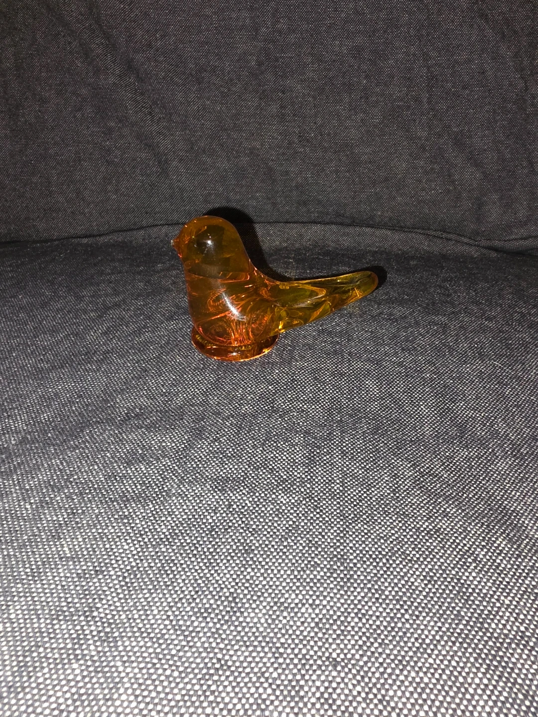 Here's a lovely amber glass bird figurine. It's a beautiful piece to add to any collection or as a decorative item in your home. It's in great condition and ready to find a new home!