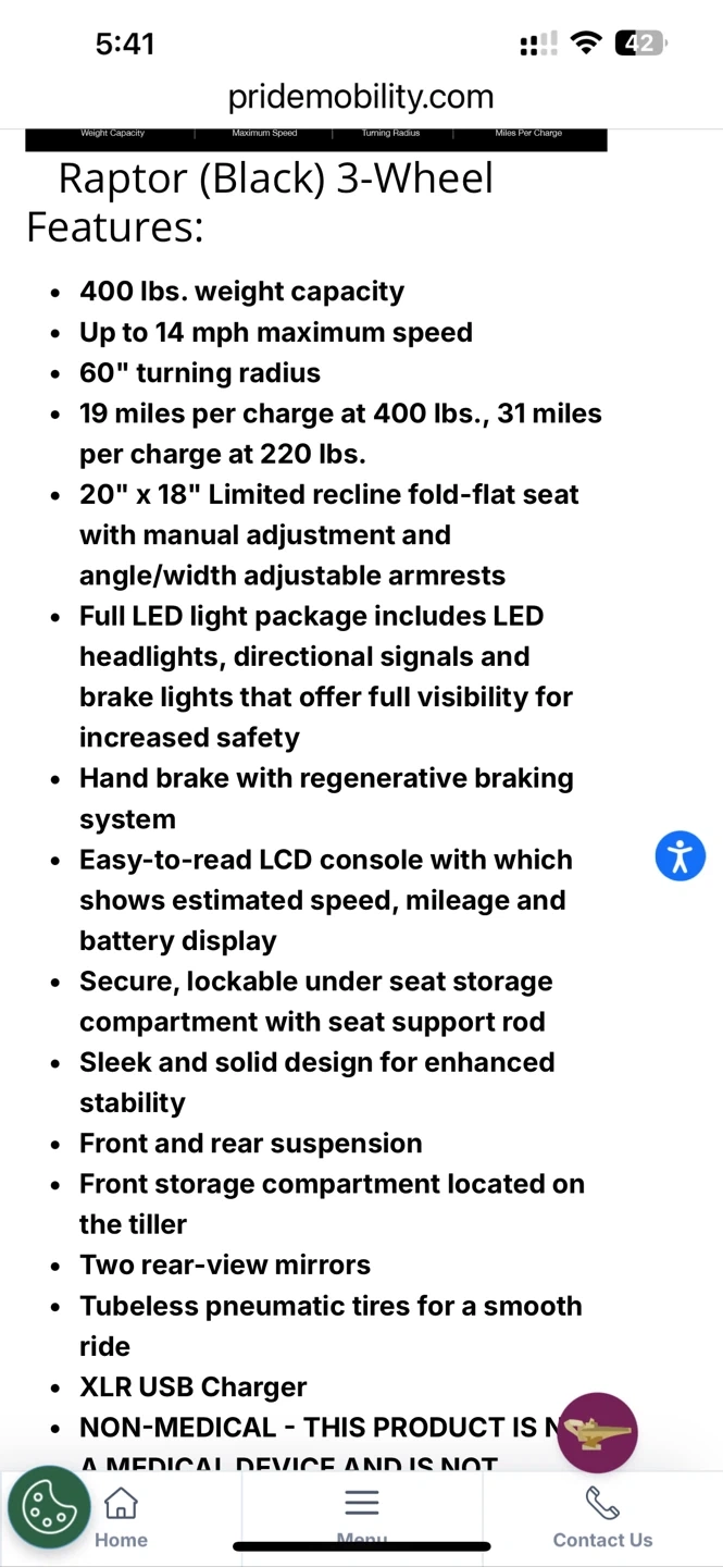 Great for running around doing errands has and decent distance range. Seat is comfortable with arm rests on both sides.