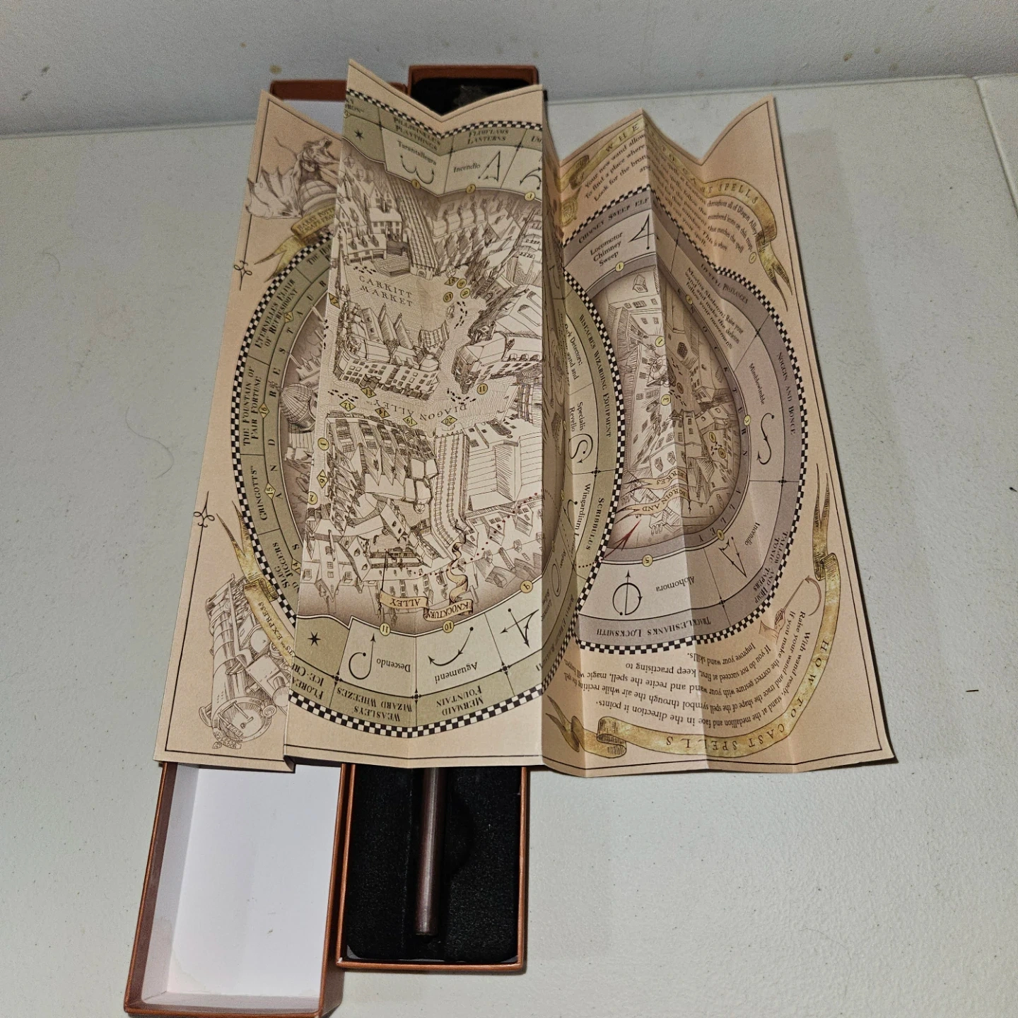 Selling a Harry Potter wand from Universal Studios! This wand comes with its original box and a map of Diagon Alley. It's in great shape and ready for a new wizard or witch!