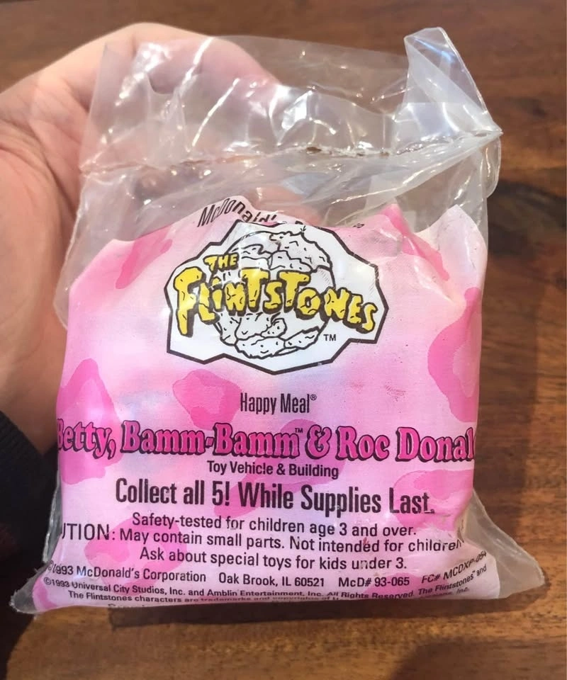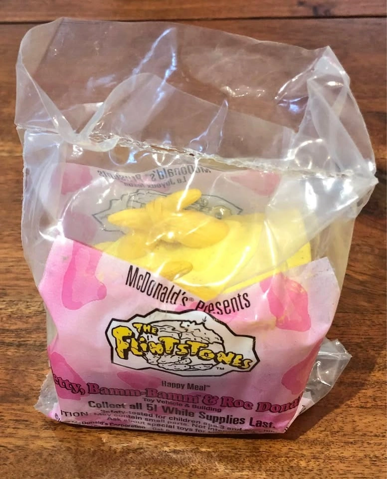 One Factory Sealed McDonald’s The Flintstones Happy Meal Betty, Bamm-Bamm & Roc Donald’s Toy Vehicle & Building.