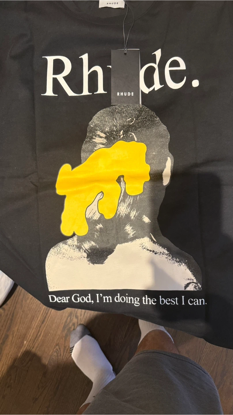Buy & SellRhude Dear God Tee - BlackRhude Dear God Tee - Black$65Selling a new Rhude "Dear God, I'm doing the best I can" black tee. Never worn, still in the original packaging!ConditionNewSizeXLBrandRhudeWHERE TO MEETShopRiteView MapSELLERverifiedJRDix Hills650 reviews0 chats·0 favorites·8 viewsSEND CHAT TO SELLERHi JR! I’m interested in your listing.Hi JR! I’m interested in your listing.Get the Karrot app to chatSign In to chat