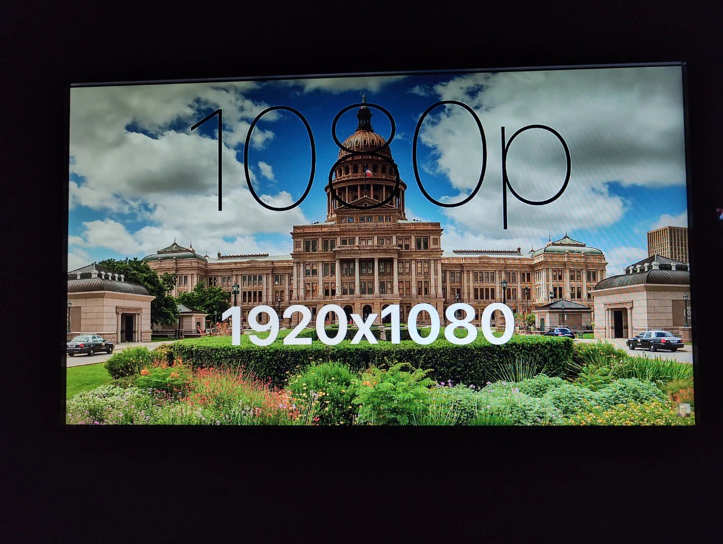 It has VGA, DVI-D, HDMI 1, and HDMI 2 ports.