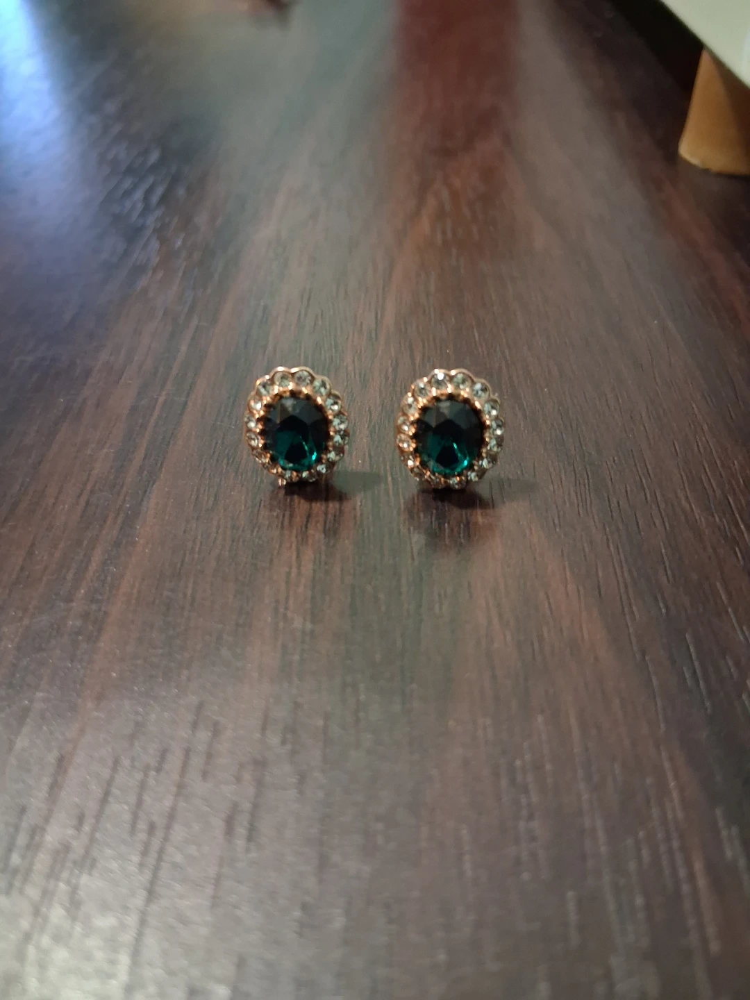 Rose Gold Plated Green Crystal Oval Studs 18K Alloy Jewellery