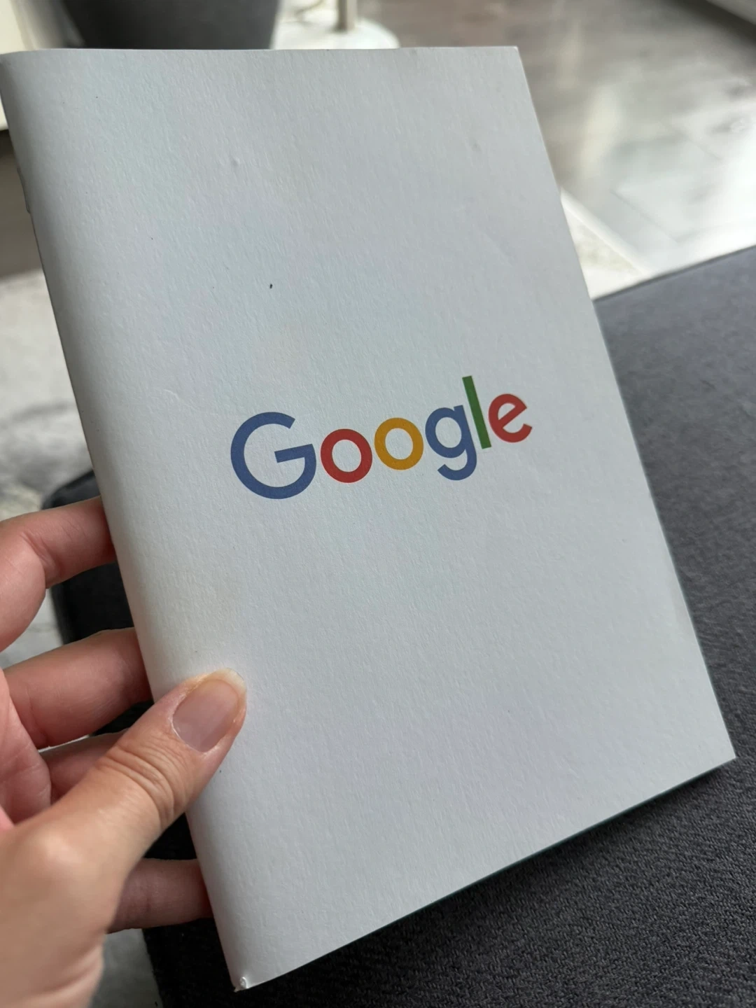Selling a Google eco lined notebook. It's perfect for taking notes or jotting down ideas. The notebook features lined pages and the Google logo on the cover