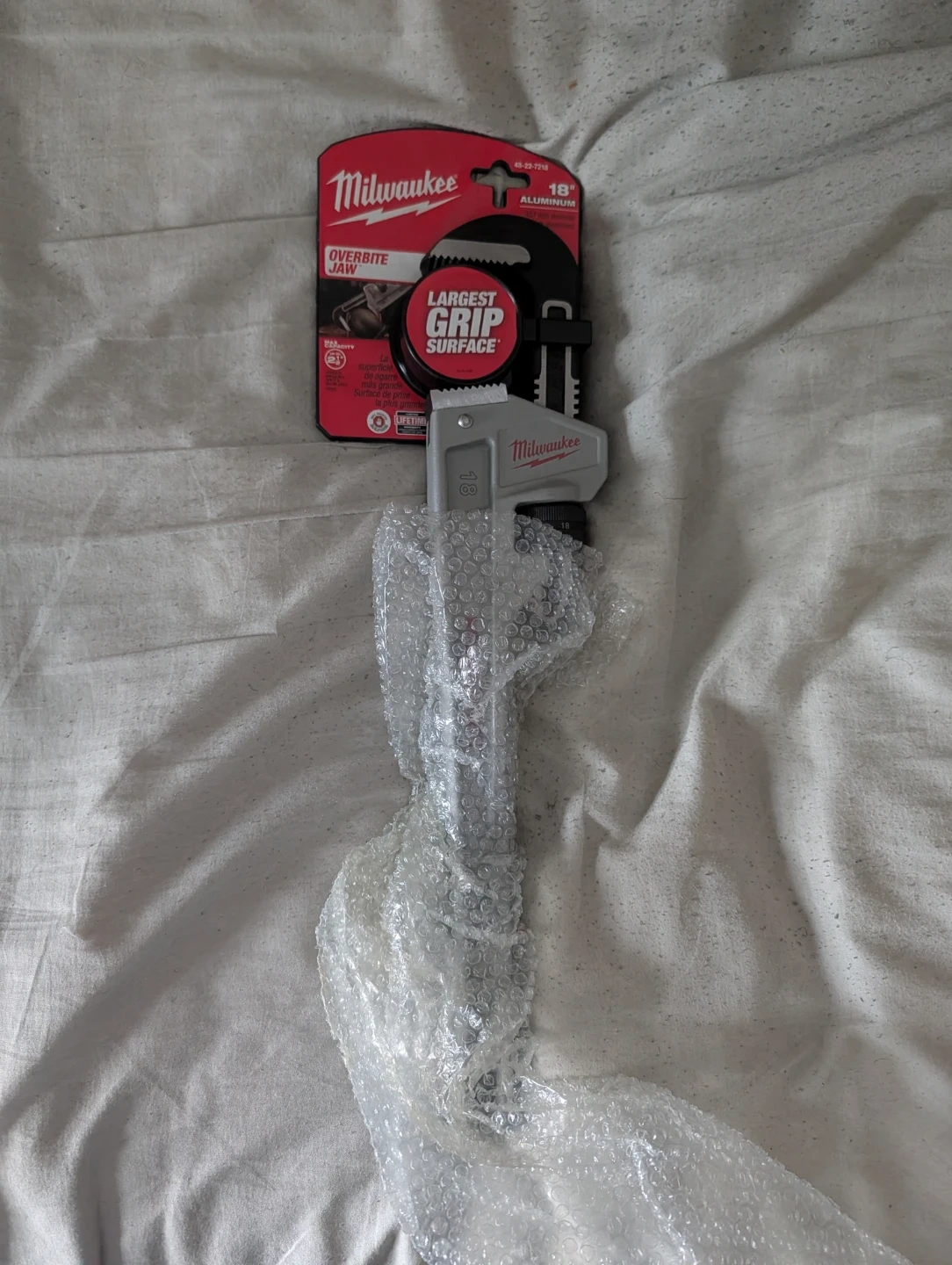 BRAND NEW condition - selling a brand new Milwaukee 18" aluminum pipe wrench! It features an overbite jaw and a large grip surface. Perfect for any plumbing needs!
