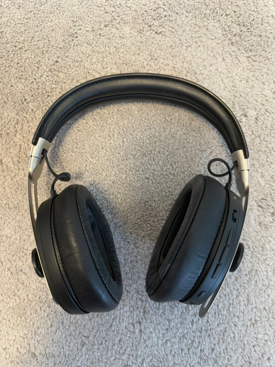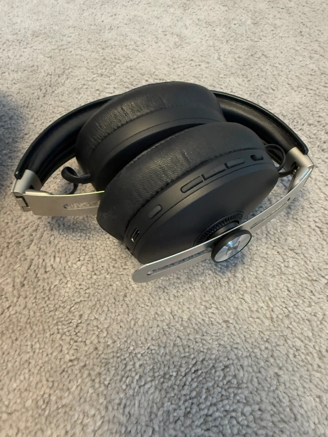 Selling a pair of Sennheiser Momentum 3 Wireless headphones in black. They are in great condition and come with a carrying case. These headphones offer excellent sound quality and noise cancellation for an immersive listening experience. Perfect for music lovers or anyone who wants to block out distractions!
