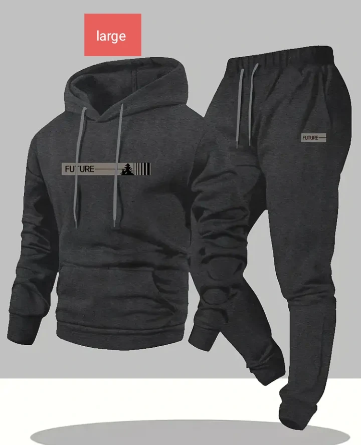 Selling multiple hoodie and pants sets, size large. The set features a unique design. Great for casual wear!