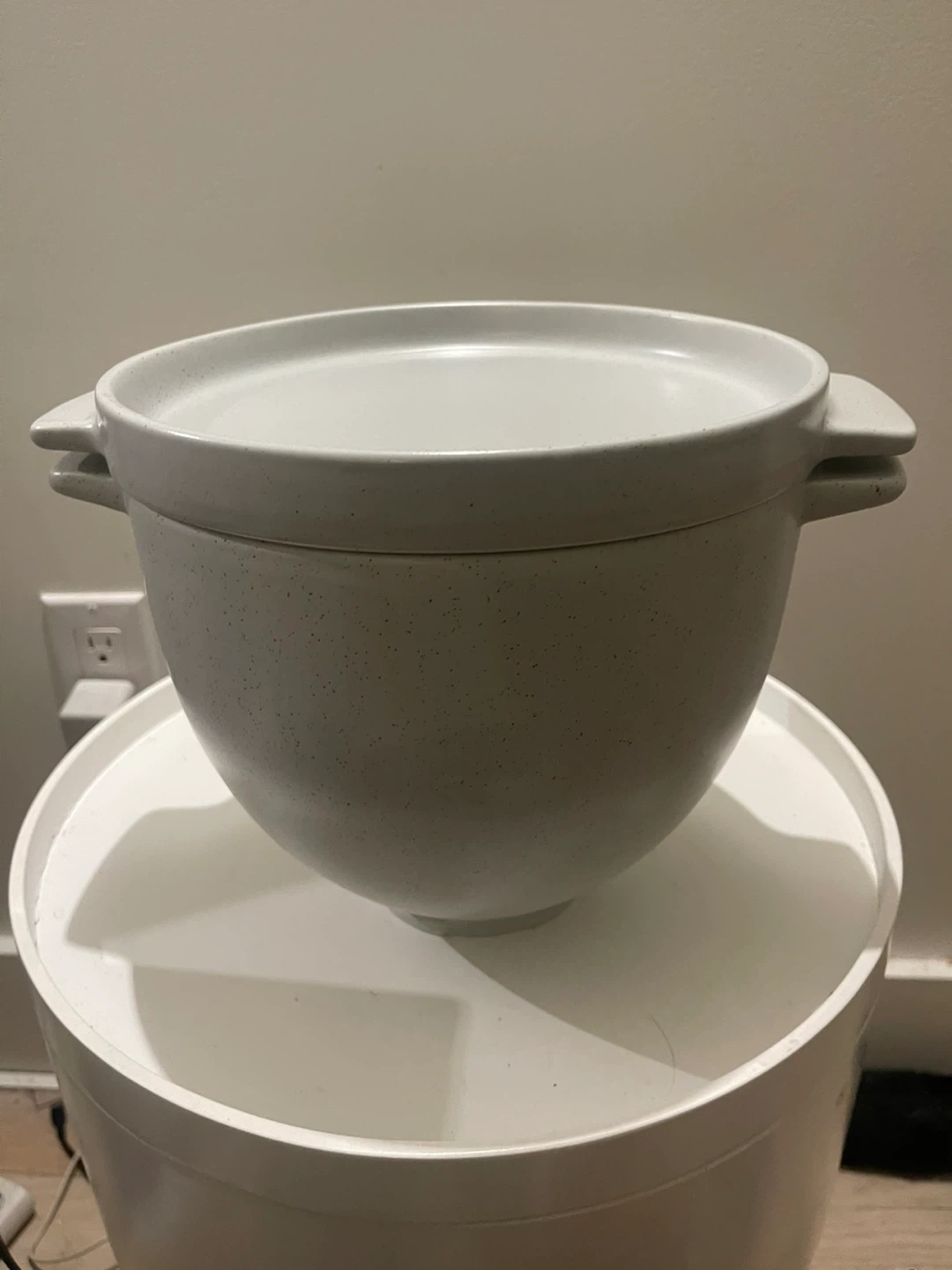 Selling a KitchenAid bread bowl! It is in great condition and ready for a new kitchen. It allows you to mix and then bake bread from the same bowl.