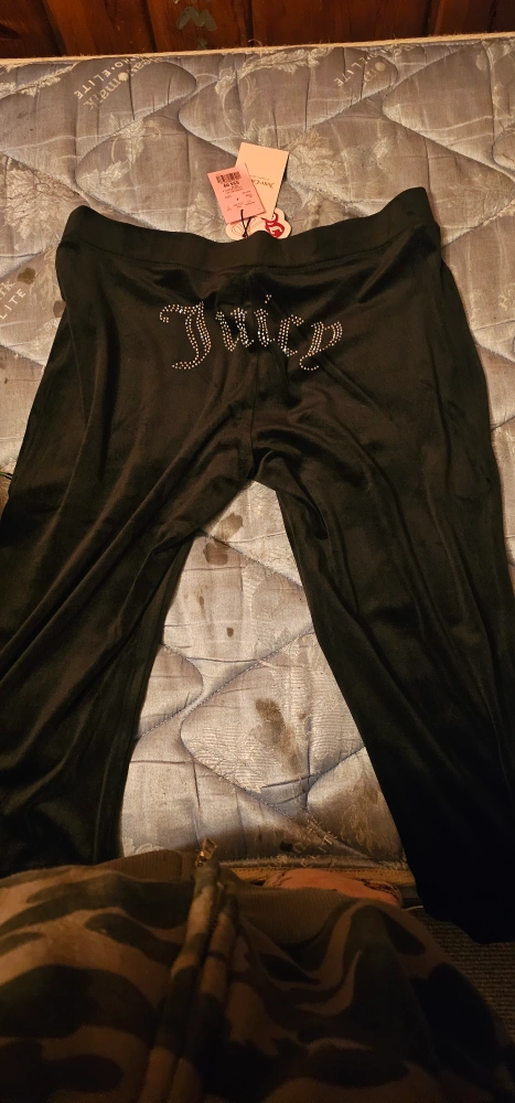 Selling a pair of black velour pants from Juicy Couture. They're super comfy and in great condition. The pants have the Juicy logo on the back. Perfect for lounging or running errands!