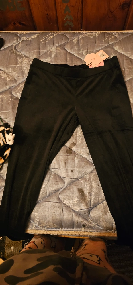 Selling a pair of black velour pants from Juicy Couture. They're super comfy and in great condition. The pants have the Juicy logo on the back. Perfect for lounging or running errands!