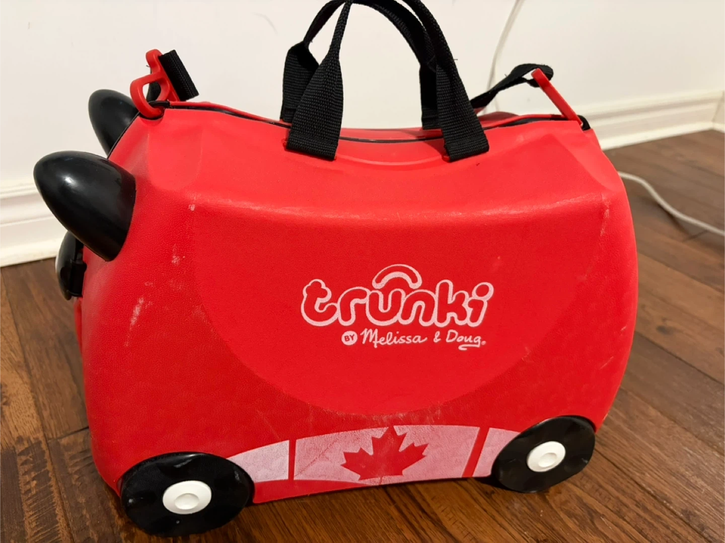 Check out this red Trunki ride-on suitcase by Melissa & Doug! It's perfect for little travellers. The suitcase features a fun design and is in great condition for your next adventure