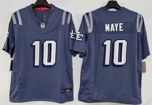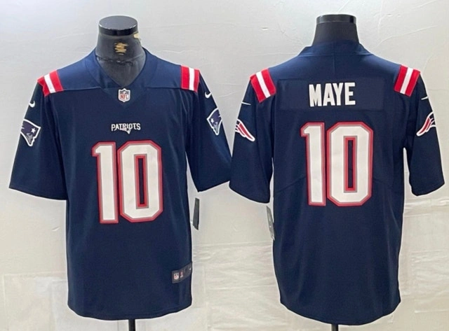 Show your team pride with this New England Patriots Maye #10 jersey! The jersey is in brand new with tags condition, with all striping, numbering and logos in perfect condition. Perfect for any football fan!