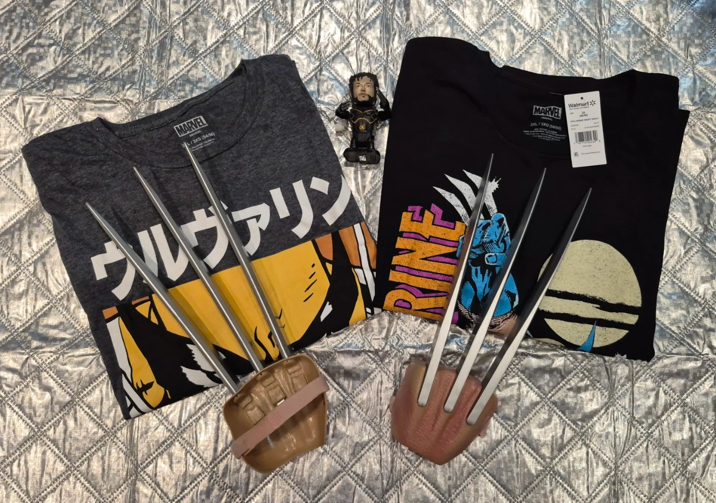 Marvel Wolverine T-Shirts (3XL), cosplay claws & wind up toy.