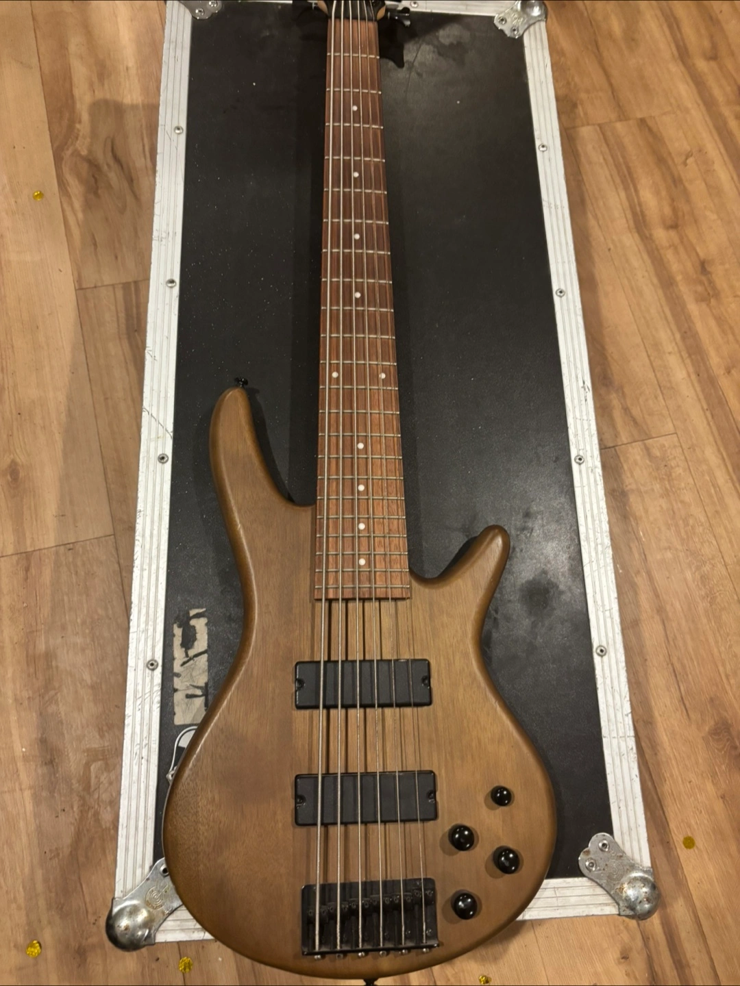 Selling an Ibanez Soundgear bass guitar. It's in used condition with some signs of wear. Perfect for someone looking for a reliable instrument!