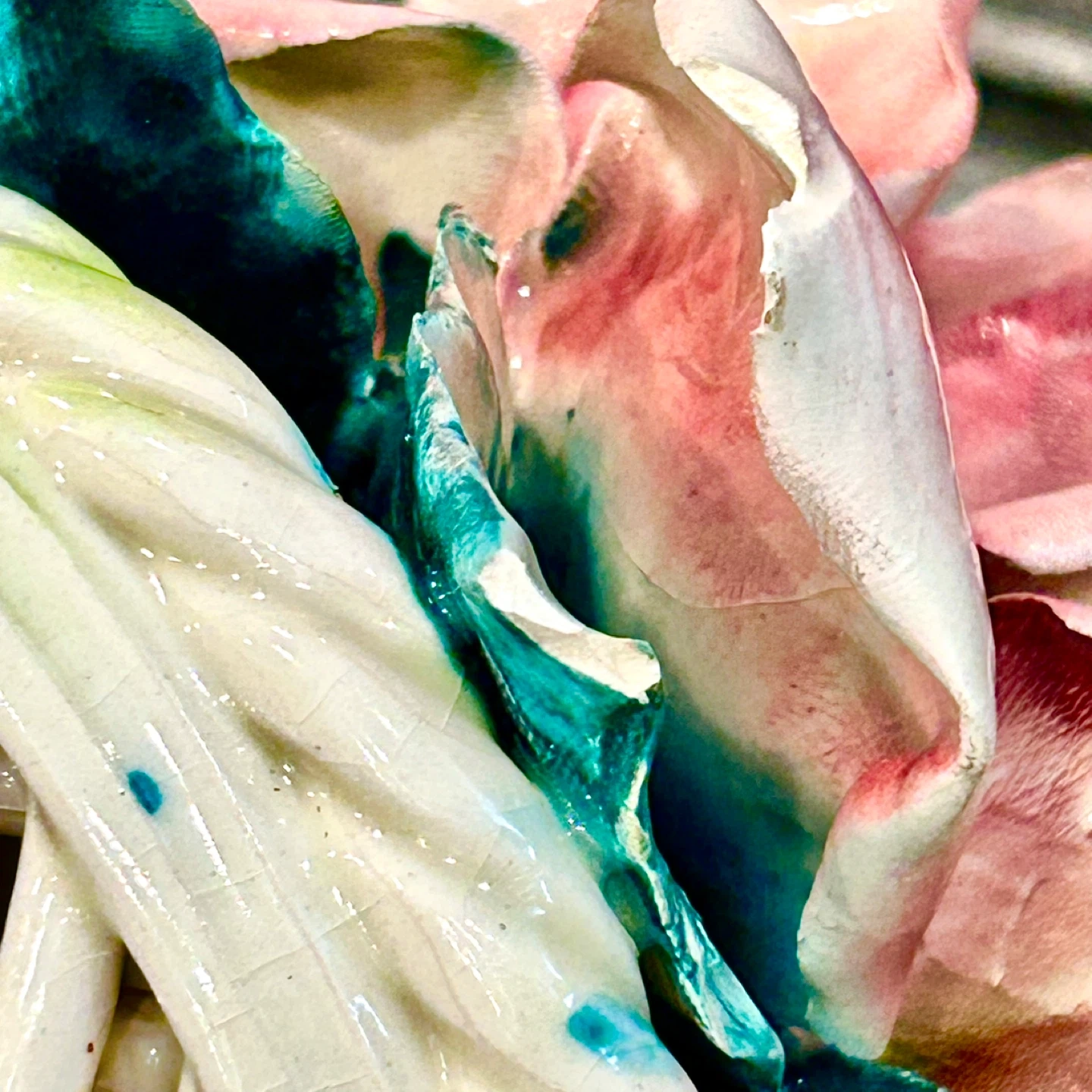 • Yellow rose: tiny tip chips only, described as very minimal, plus small edge wear/chipping on the underside of the yellow petals.