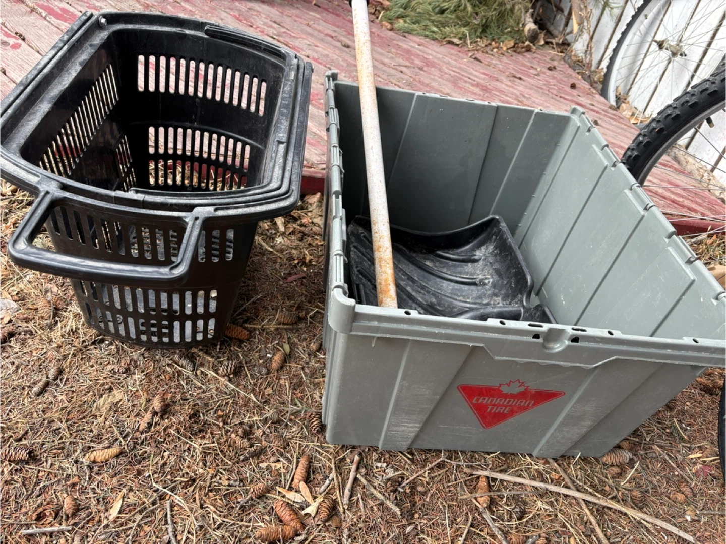 Selling a used storage tote and basket. The tote is from Canadian Tire. Great for organizing your space or carrying items! Pickup at Morley trail NW