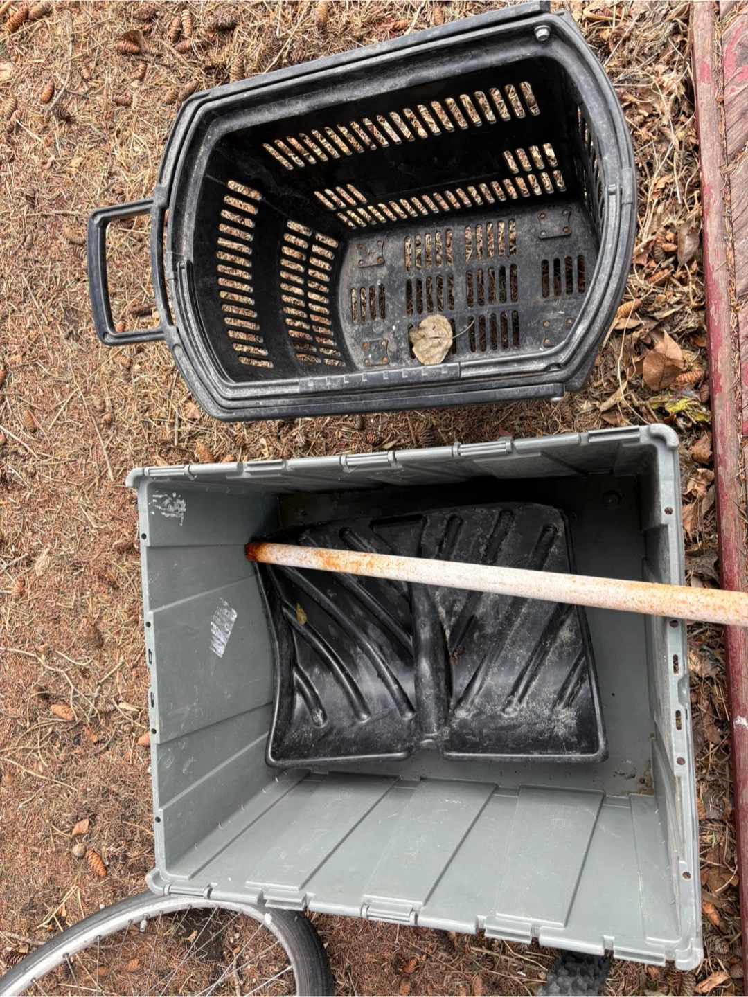 Selling a used storage tote and basket. The tote is from Canadian Tire. Great for organizing your space or carrying items! Pickup at Morley trail NW
