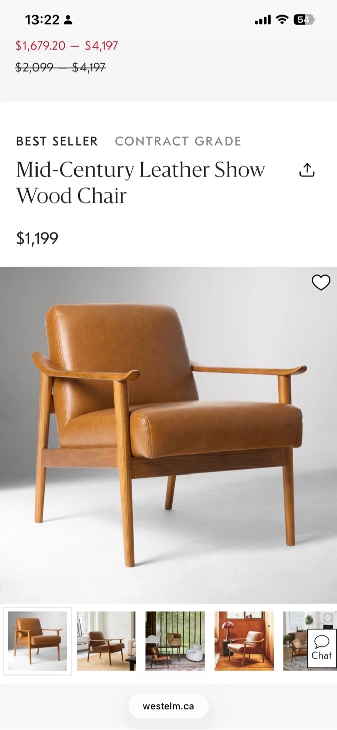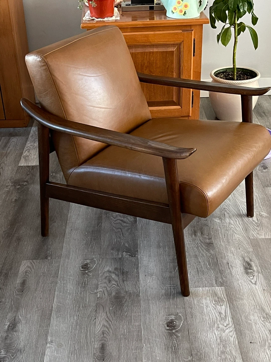 MCM 100% Leather & Teak Beautiful Chair