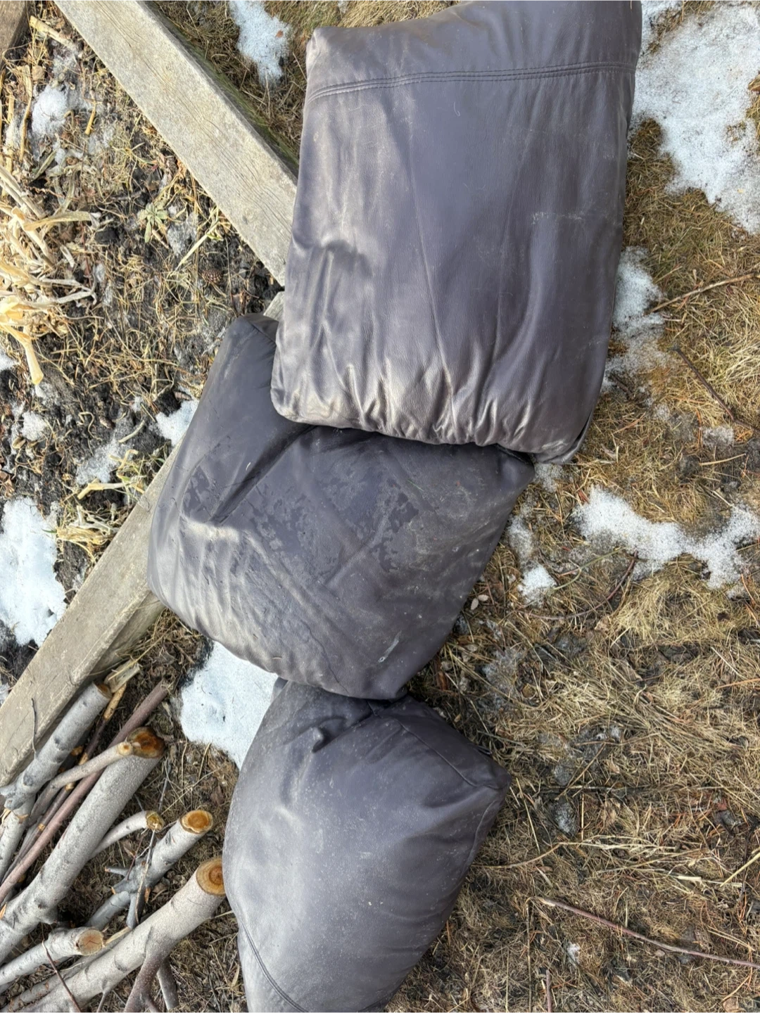 Selling a set of brown leather cushions! They show some signs of use and wear, but still have plenty of life left in them. Perfect for adding a touch of comfort to your space. Pickup at Morley trail NW