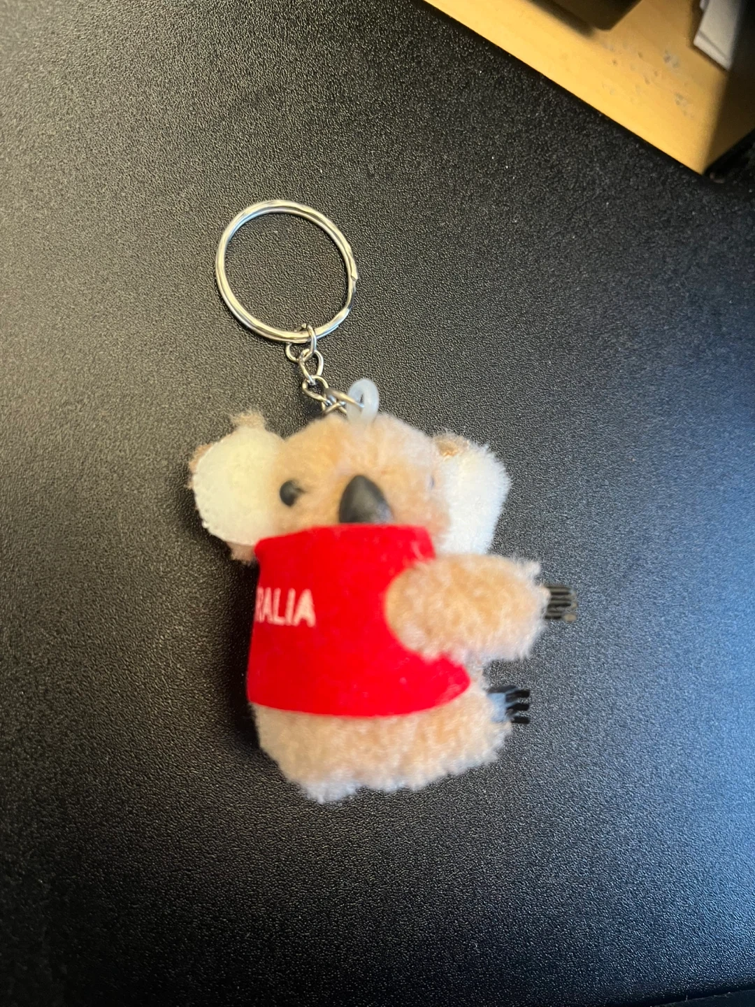 Cute koala keychain with a little red shirt that says 'Australia' on it! It's in great condition and ready to add some Aussie charm to your keys or bag.
