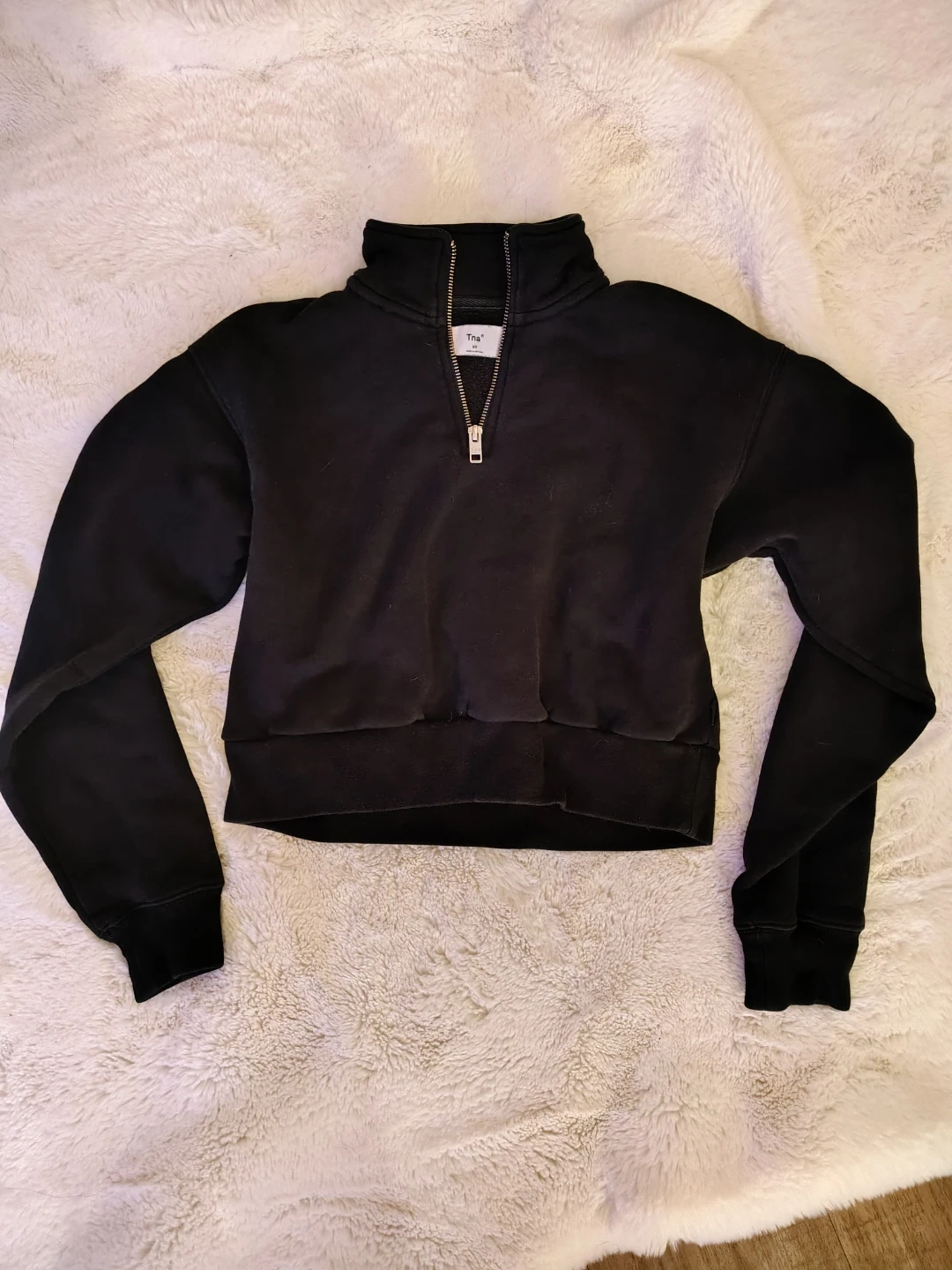 Selling a TNA black 1/4 zip cropped sweater in size XS! It's in great condition and would be a cozy addition to your wardrobe. Worn a few times, just not a big hoodie/sweater person, but really nice to throw on for the chilly days!