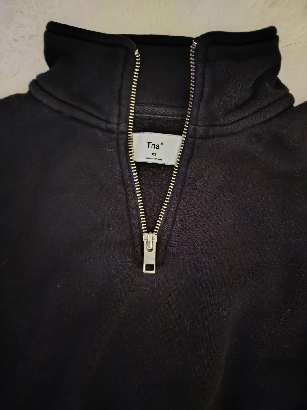 Selling a TNA black 1/4 zip cropped sweater in size XS! It's in great condition and would be a cozy addition to your wardrobe. Worn a few times, just not a big hoodie/sweater person, but really nice to throw on for the chilly days!