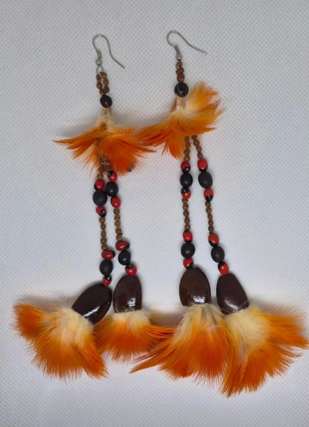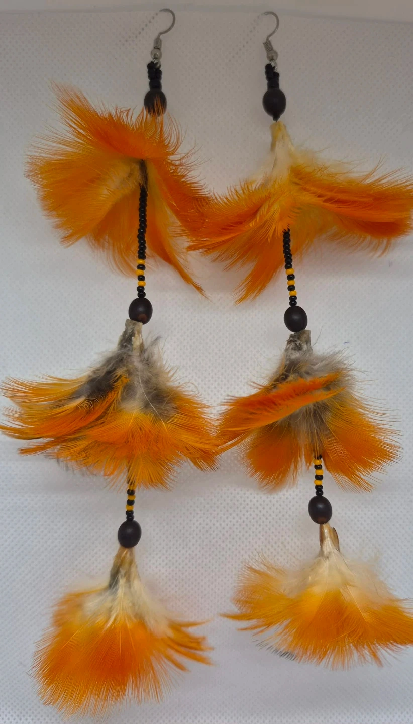 Unique and eye-catching orange feather beaded dangle earrings! These earrings feature vibrant orange feathers combined with colorful beads, creating a fun and stylish accessory. Perfect for adding a pop of color to any outfit