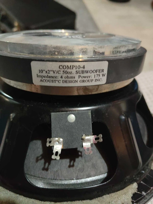 For sale is an ADG 10-inch Comp Series subwoofer, perfect for enhancing your car audio system with deep, resonant bass. This subwoofer is in used condition, but still delivers powerful performance. It features a 4-ohm impedance and 175W power handling. Additional specs include: * 10" x 2" V/C 50oz Subwoofer * Impedance: 4 ohms * Power: 175 W Based on similar listings on Kijiji, I'm pricing this at $20, offering great value for its performance. If the ad's up, it's up for grabs! $20 OBO. AS IS