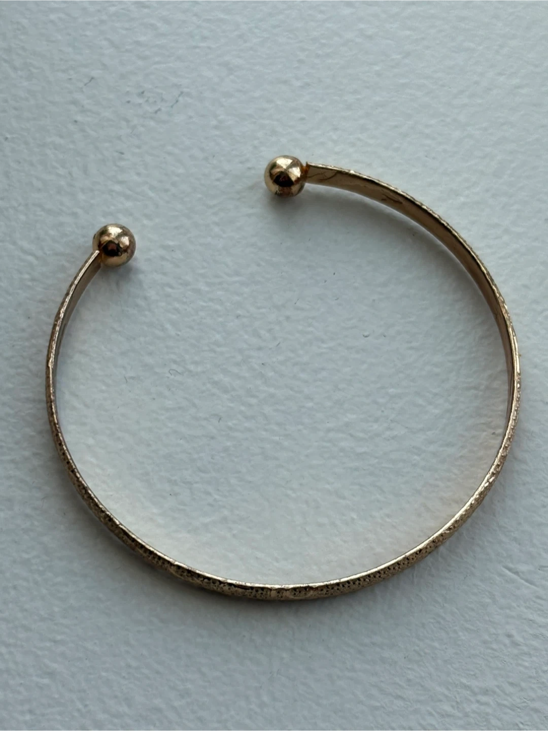 Selling a gold-tone bangle bracelet. It has a textured design and ball ends. Perfect for adding a touch of elegance to any outfit