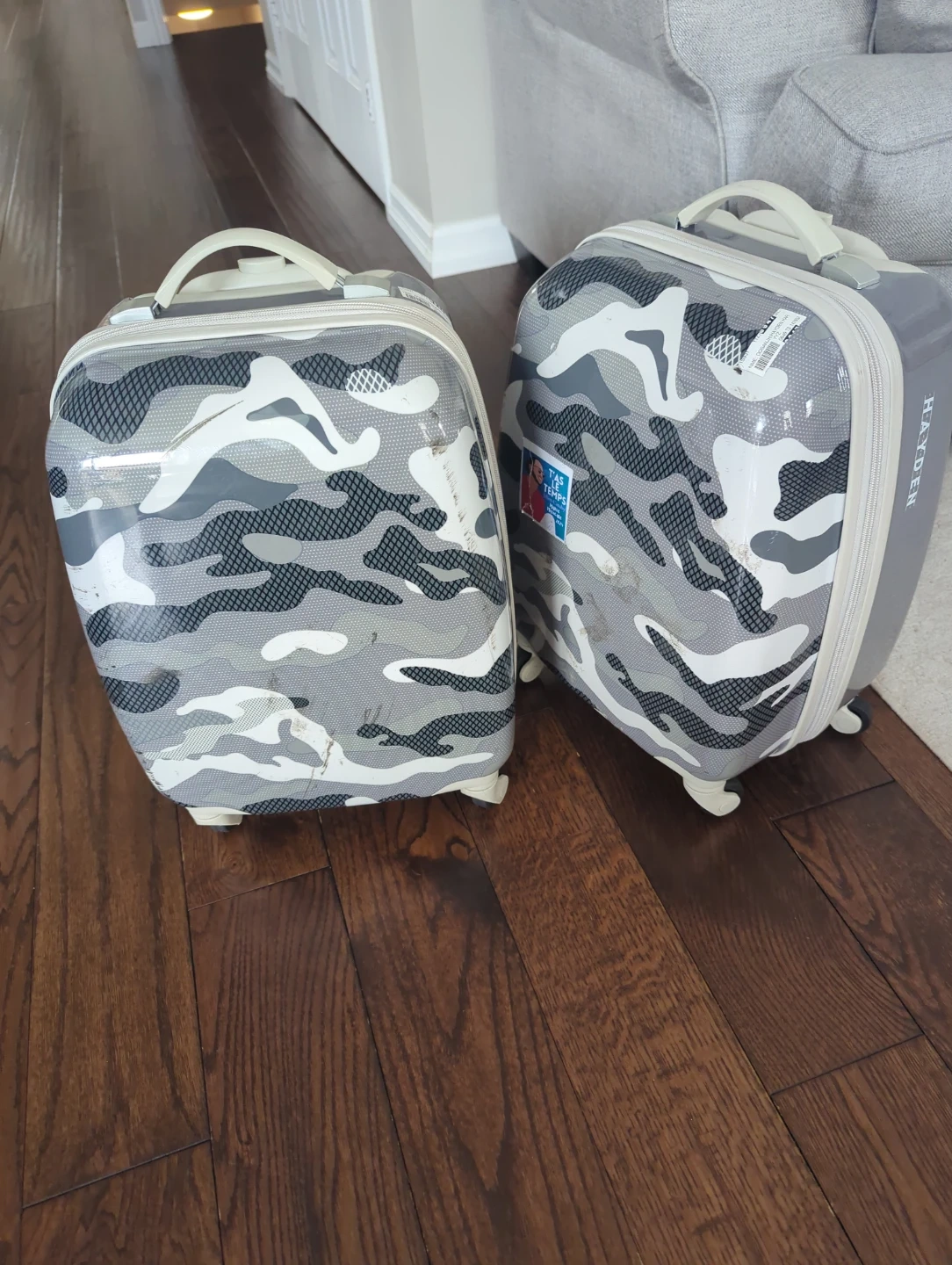 Selling two Heys luggage pieces in a grey camouflage pattern. They're in good condition and ready for your next adventure!