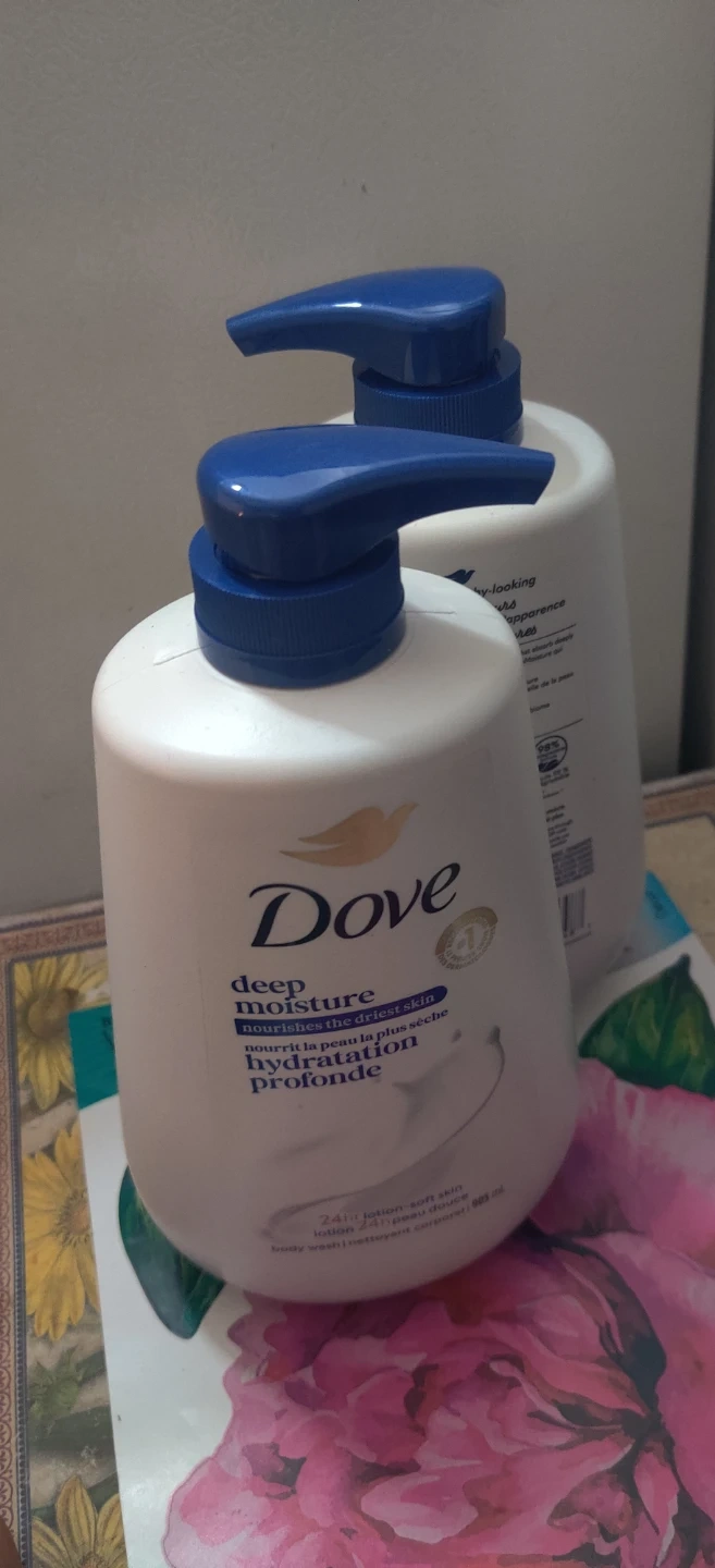 Dove Deep Moisture Body Wash nourishes the driest skin. It provides 24-hour lotion-soft skin and is a body wash and nettoyant corporel. The bottle is 100% recycled.Selling 2 bottles