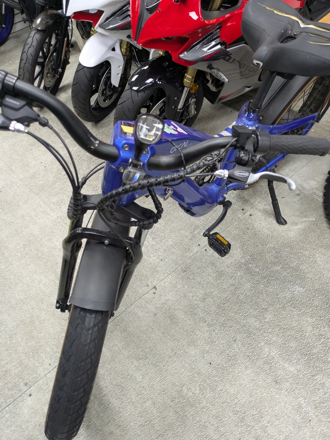 Selling a blue OKAI Cat Big Boat e-bike. It has a unique design and looks like it's ready for some fun rides! The tires are brand new... the seat and LCD Screen were vandalized but can be replaced.