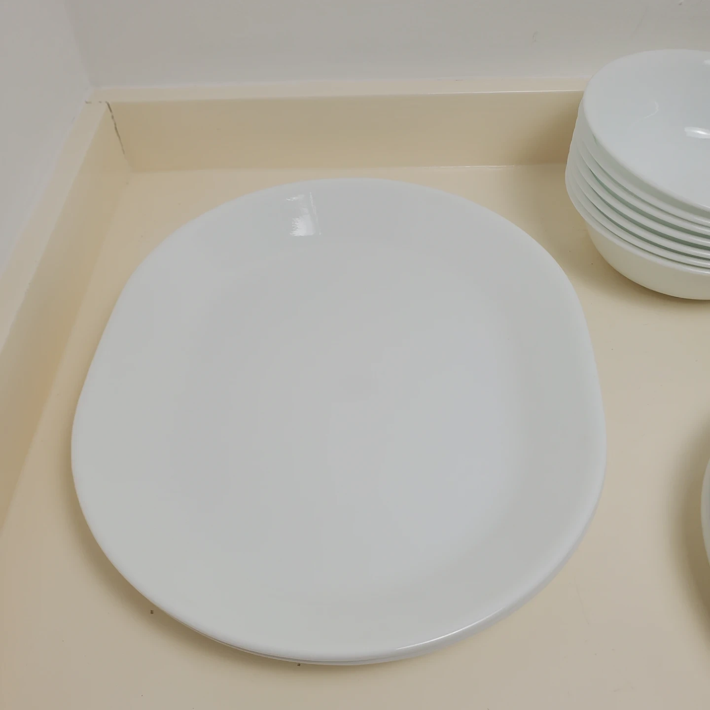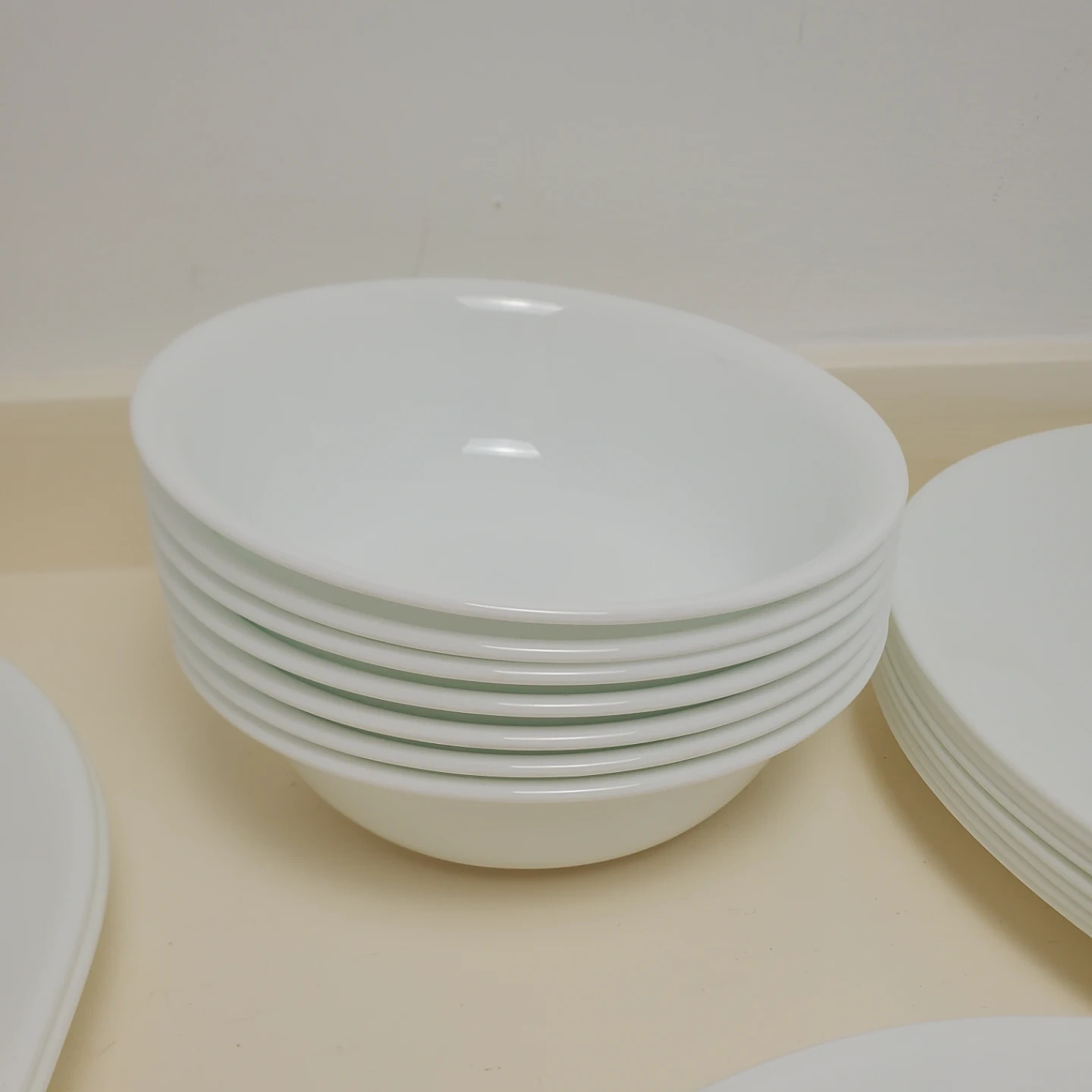 Selling a set of Corelle dinnerware in white. Includes 3 different sized plates and 2 different sized bowls. 2 food platter plates.They have wear around the rim and scratches from Silverware. 1 of the small bowls has a small gouge on the side. In over all really good condition. 50 pieces in total. Located northside by londonderry mall.