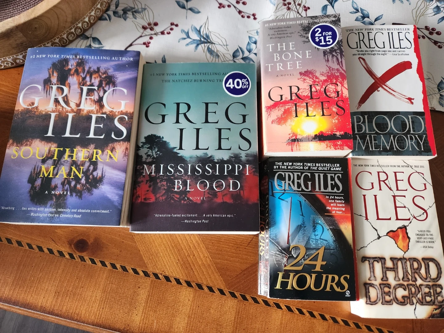 Selling a collection of books by Greg Iles. Includes the Natchez Burning trilogy, as well as other titles like Southern Man, Mississippi Blood, The Bone Tree, 24 Hours, Blood Memory, and Third Degree. Perfect for fans of thriller and mystery novels!