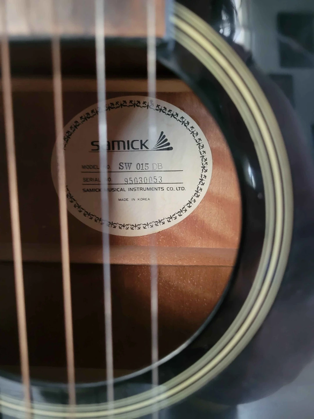 Samick acoustic guitar, model SW015DB. It's in good condition and probably just needs a good dusting/tuning. Comes with a case if you need one.
