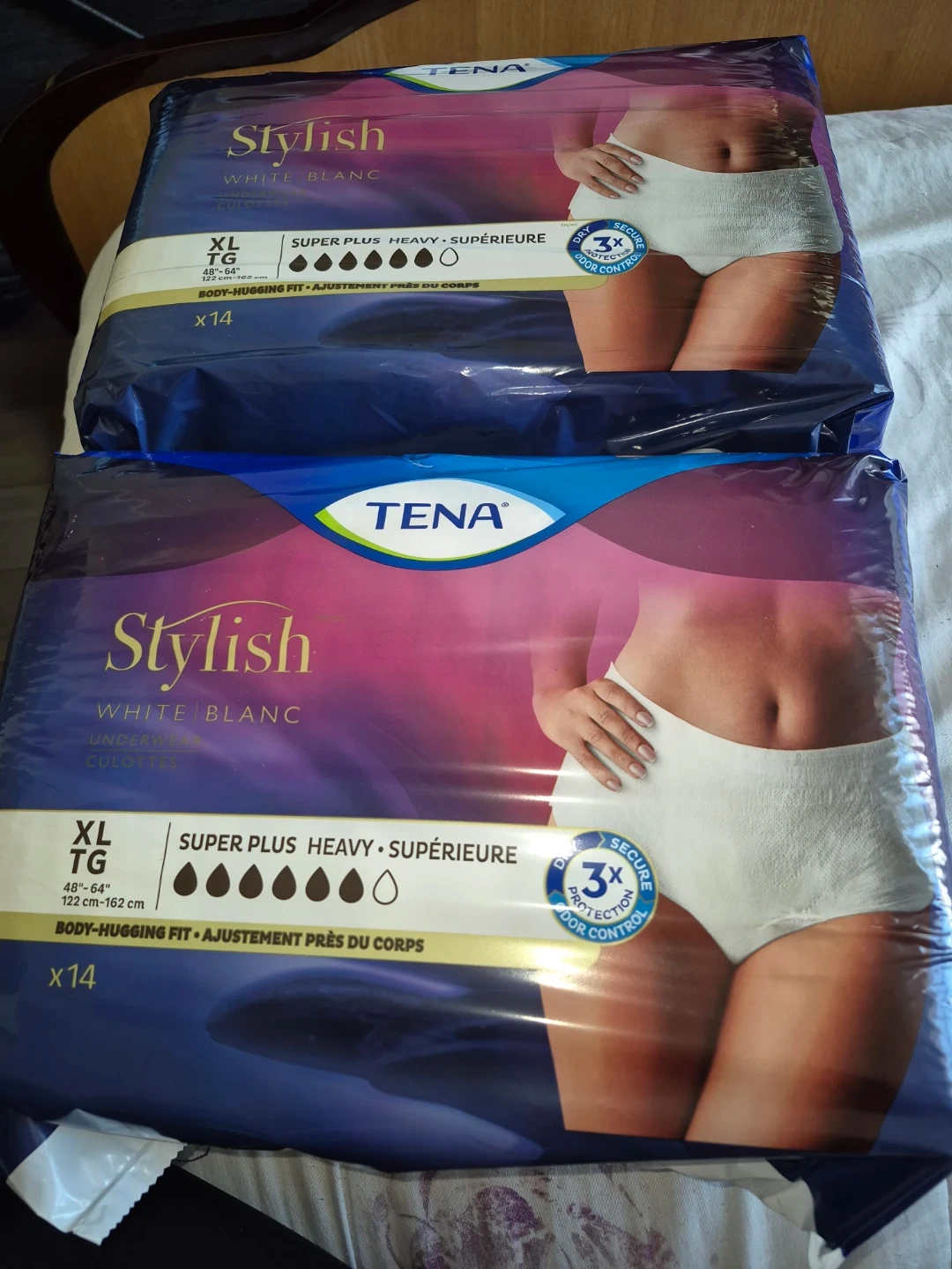 Selling a pack of TENA Stylish White Underwear. $15 each pack $30 for 2