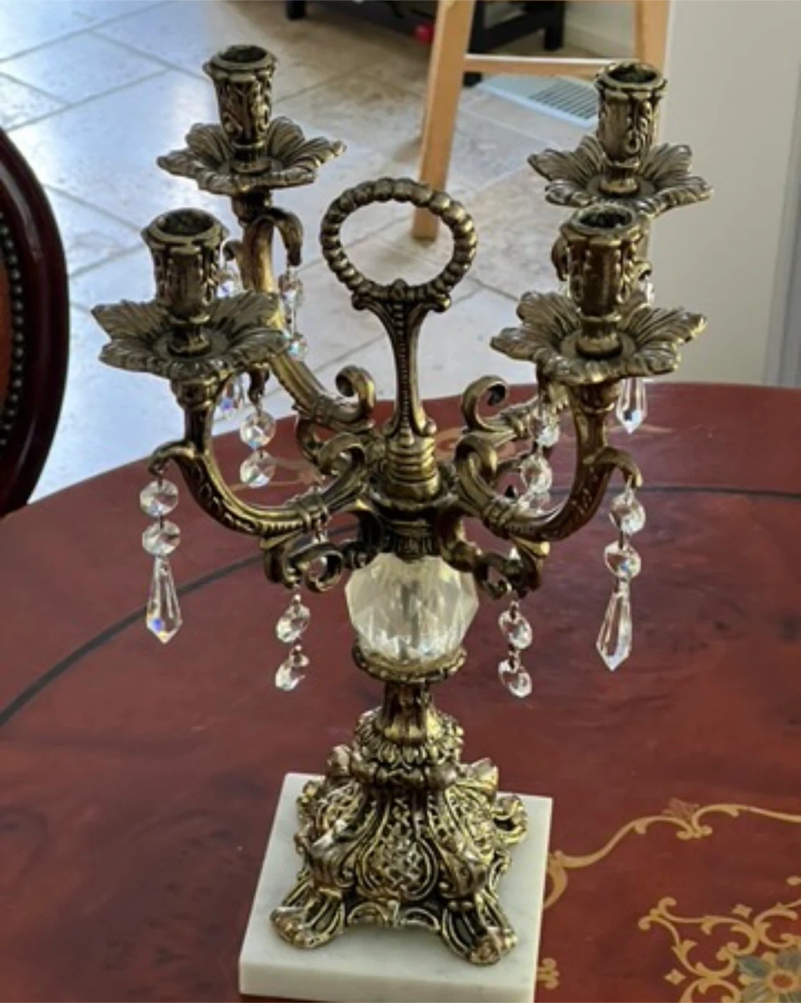 Selling a beautiful vintage candelabra! It features ornate detailing and crystal accents. It's perfect for adding a touch of elegance to any room in your home