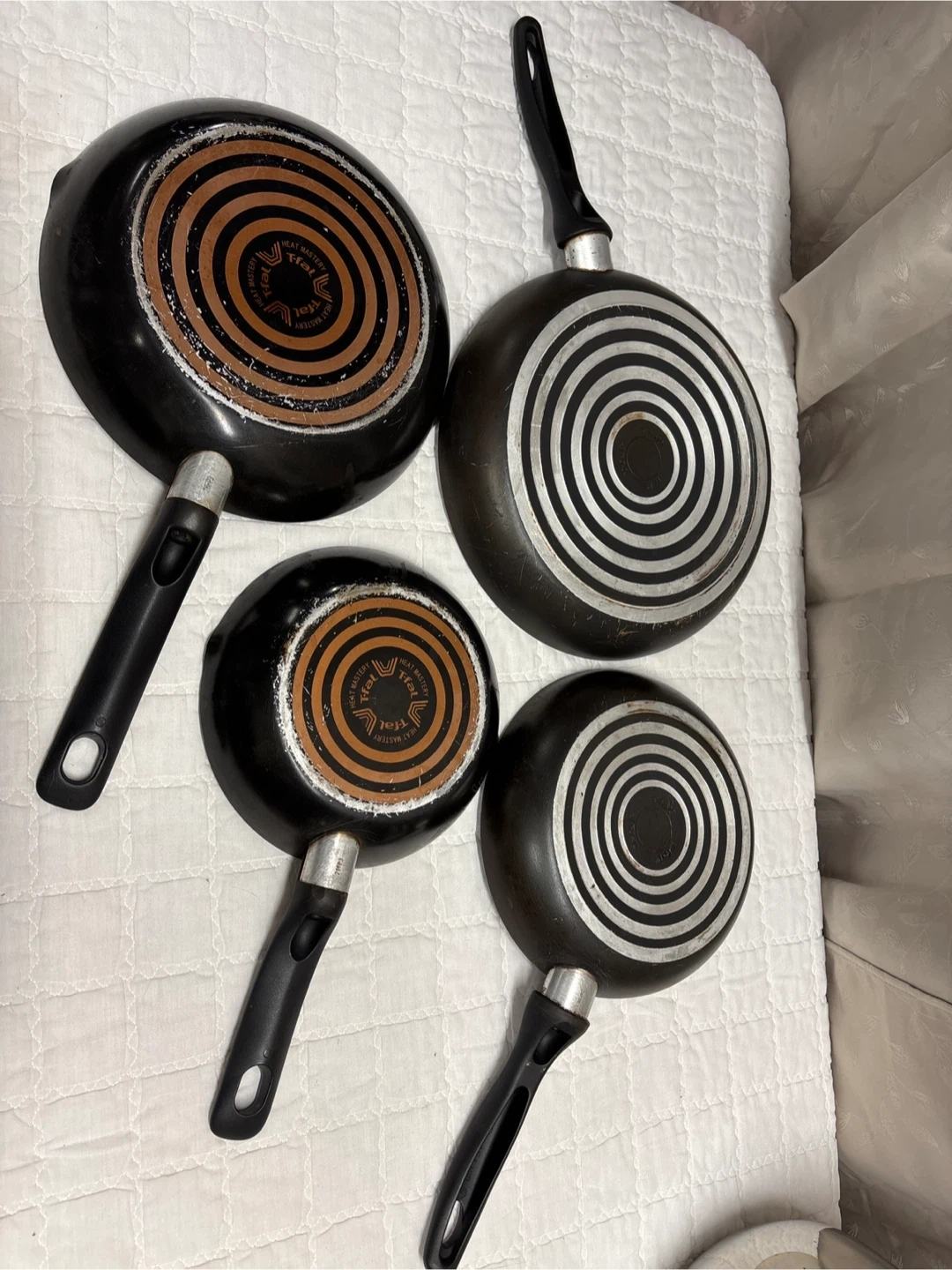 Selling a set of four T-fal nonstick frying pans. They're in used condition but still have plenty of life left! Great for all your cooking needs
