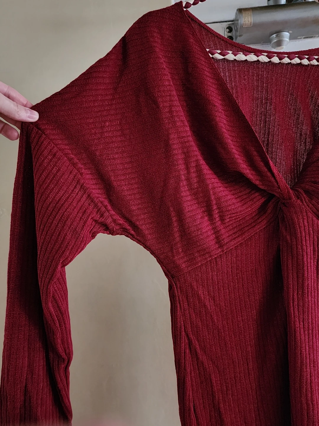 Beautiful Twist Back Burgundy Long Sleeve Rib Knit Dress * NEW