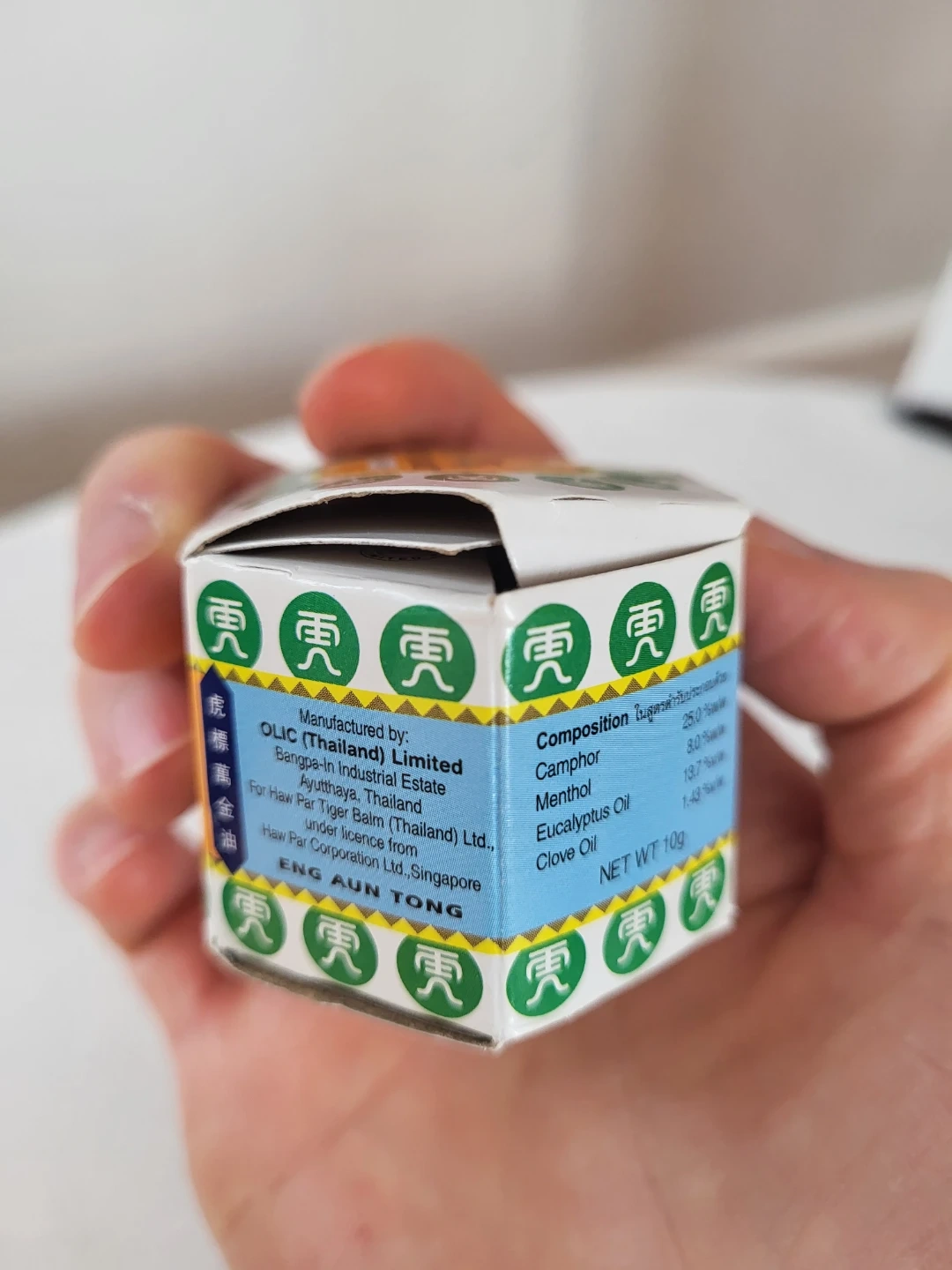 Selling a 10g tin of Tiger Balm HR ointment! It's great for relief of muscular aches and pains, and also for insect bites.