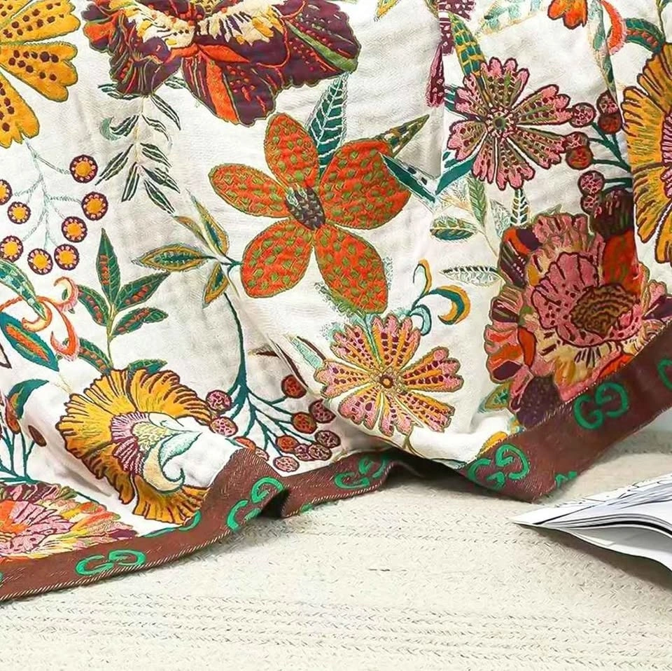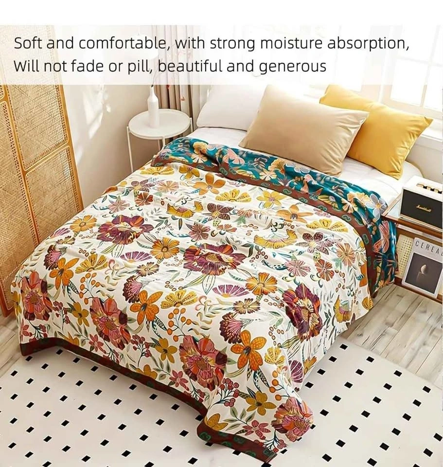 Watbro Boho Throw Blanket for Bed - 100% Cotton Ultra Soft Luxury Throw Rustic Fall Quilt, Floral Printed Farmhouse Decor Bed Blankets, 60"×80" All Season Rustic Throw for Living Room Sofa Couch Chair