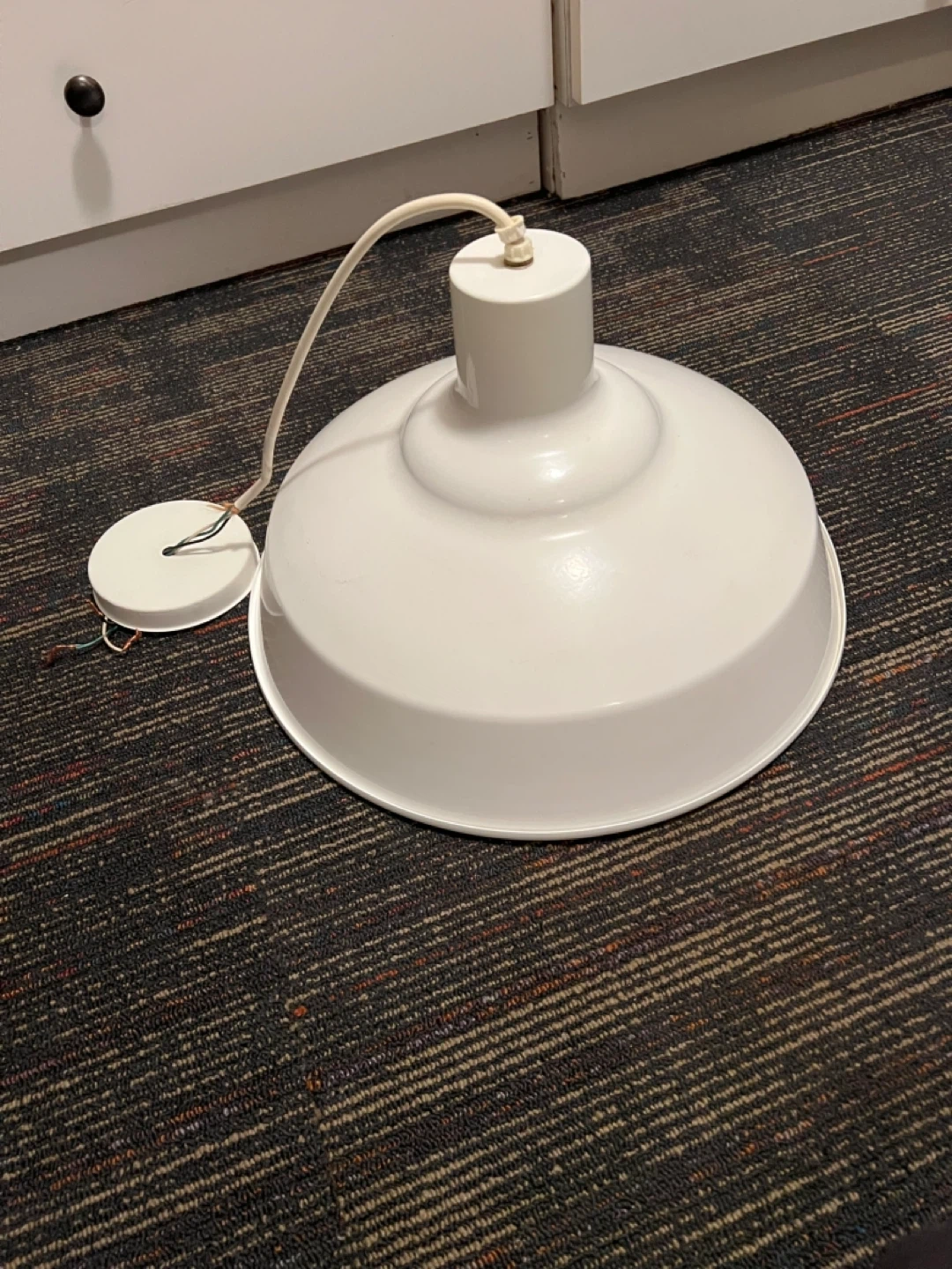 Selling a white pendant lamp. It's in great condition and ready to brighten up your space! Perfect for adding a touch of modern style to any room